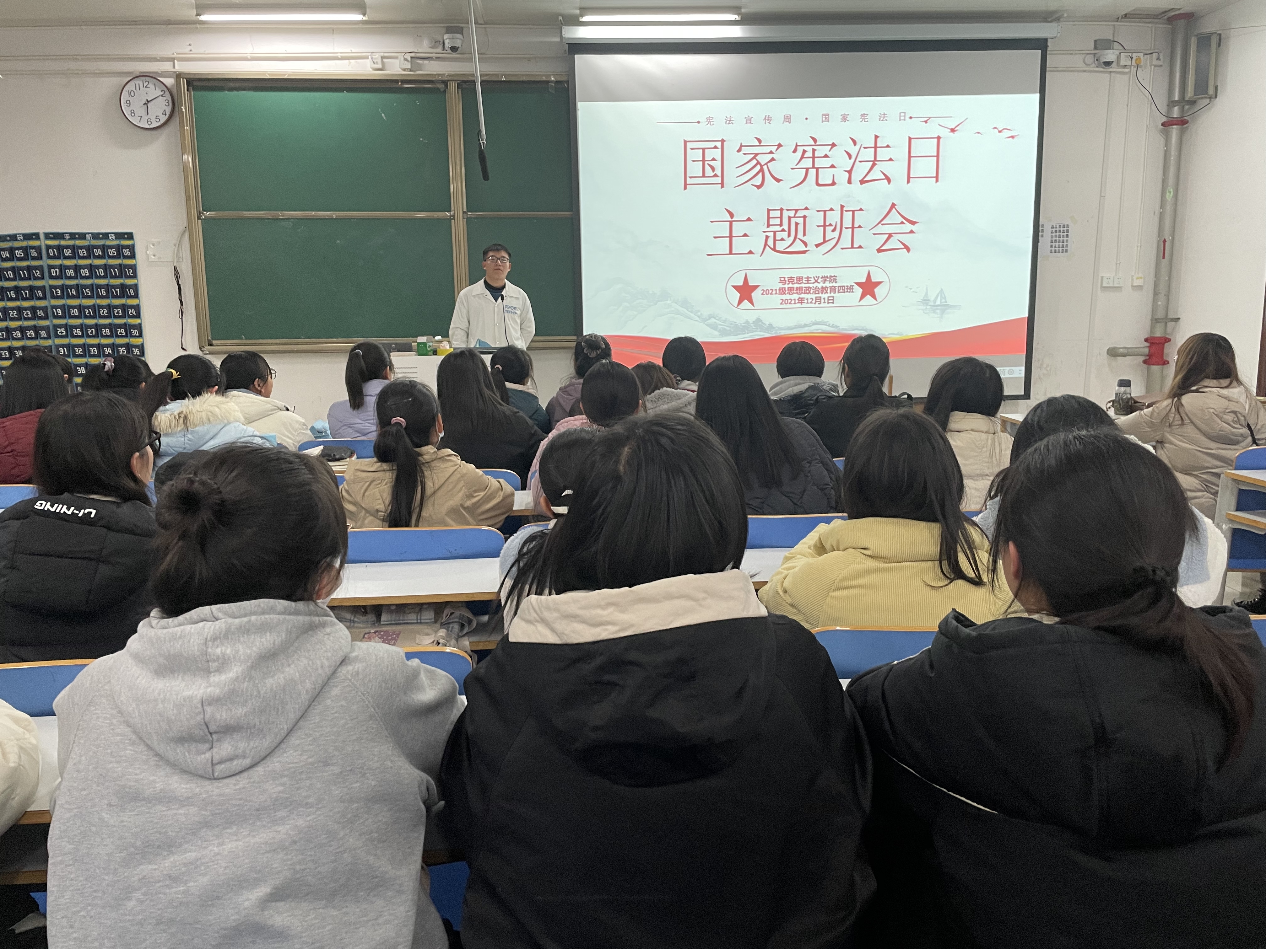 为深入学习习近平新时代中国特色社会主义思想,大力弘扬宪法精神,12月1日上午,七大罪 2021级思想政治教育四班在社科楼514教室召开宪法宣传周主题班会。2021级思想政治教育四班全体同学参加此次班会,班会由副班长常康哲主持。