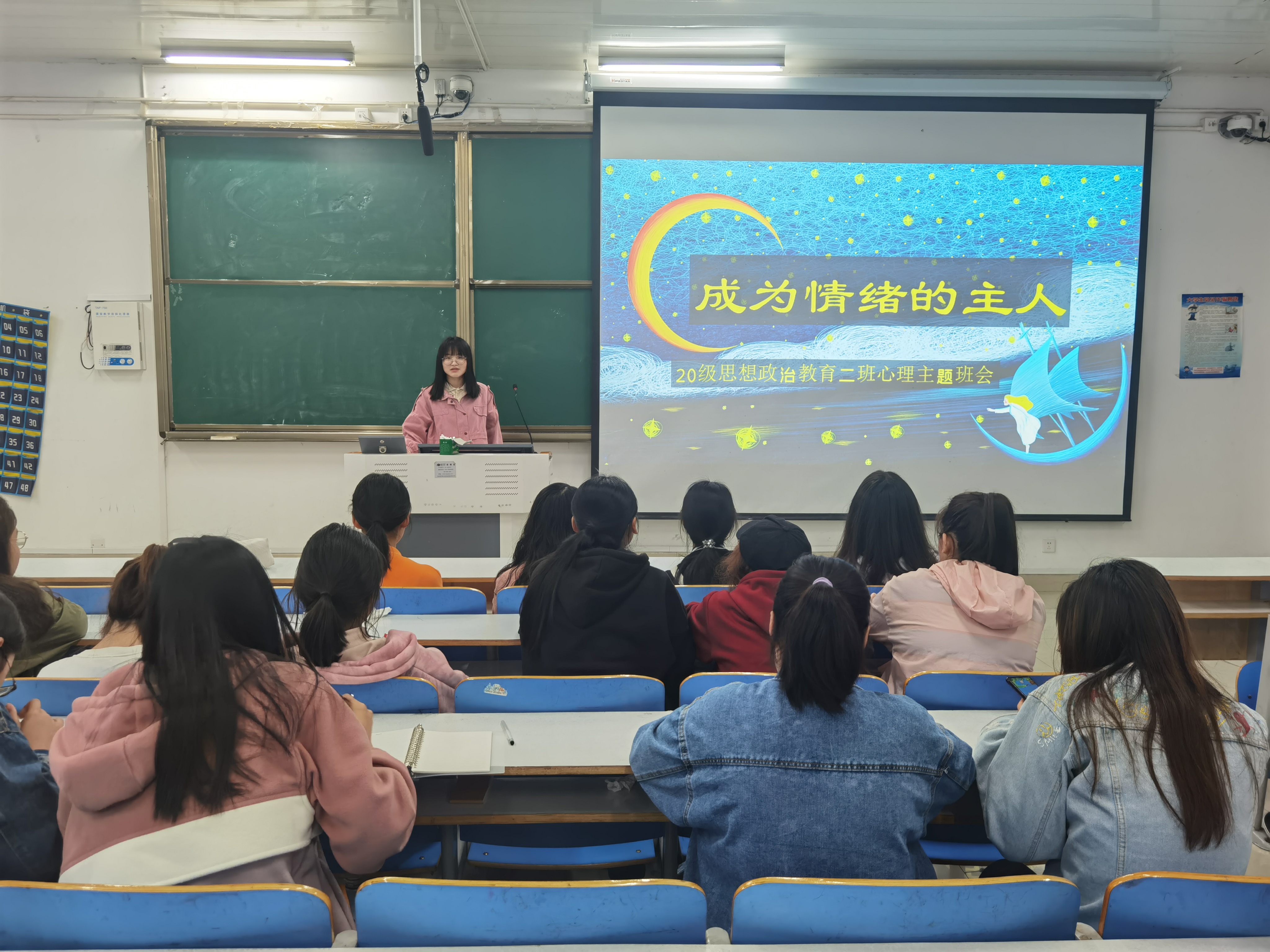 4月21日下午,七大罪 2020级思想政治教育二班在社科楼514教室顺利召开“成为情绪的主人”心理健康主题班会。2020级思想政治教育二班全体学生共同参与此次班会。班会由心理委员刘晶晶主持。