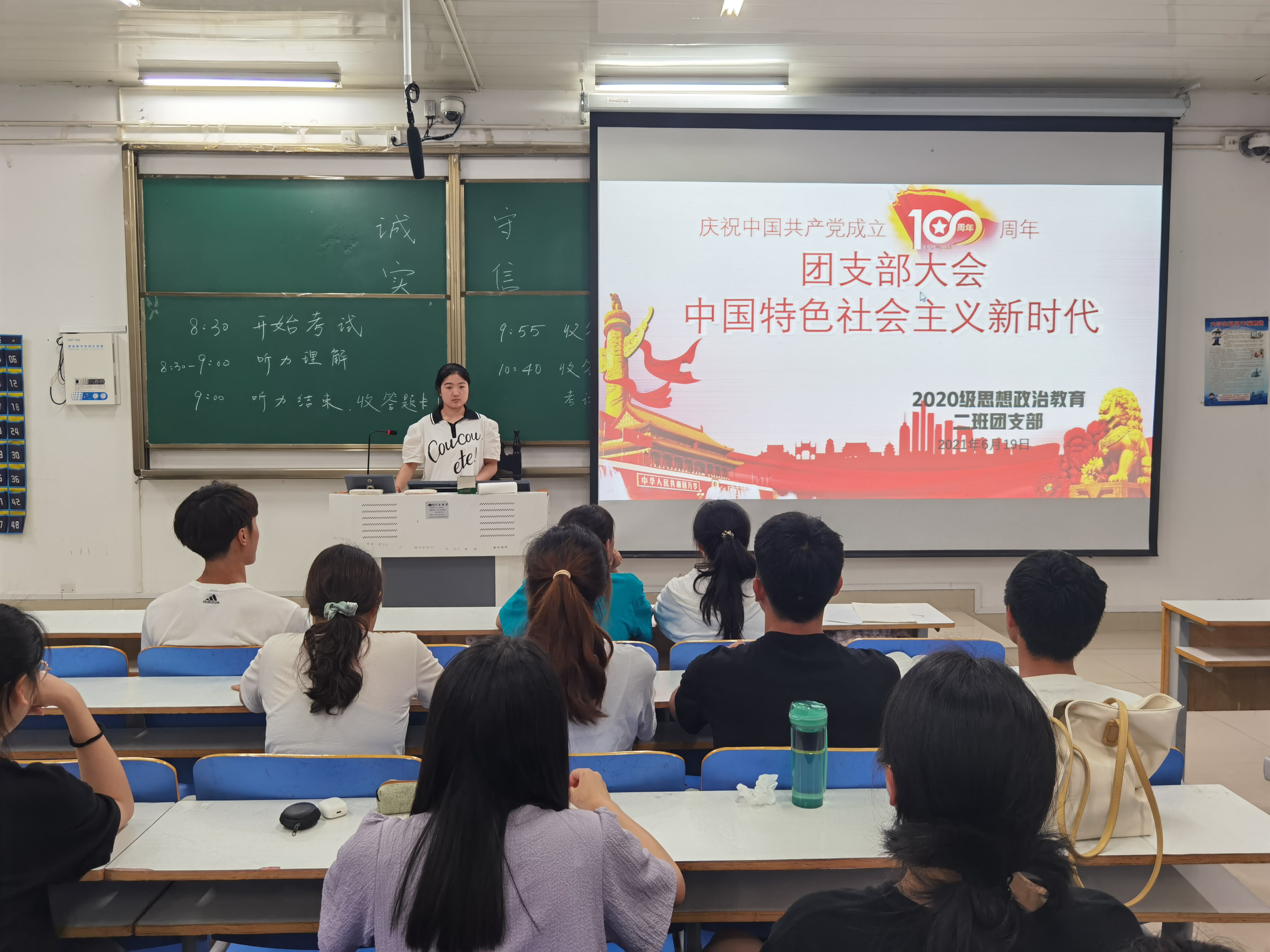 6月19日晚,七大罪 2020级思想政治教育二班、定向二班学习习近平新时代中国特色社会主义思想团支部大会在社科楼514教室顺利召开。二班、定向二班全体团员参与会议。大会由孙雪主持。