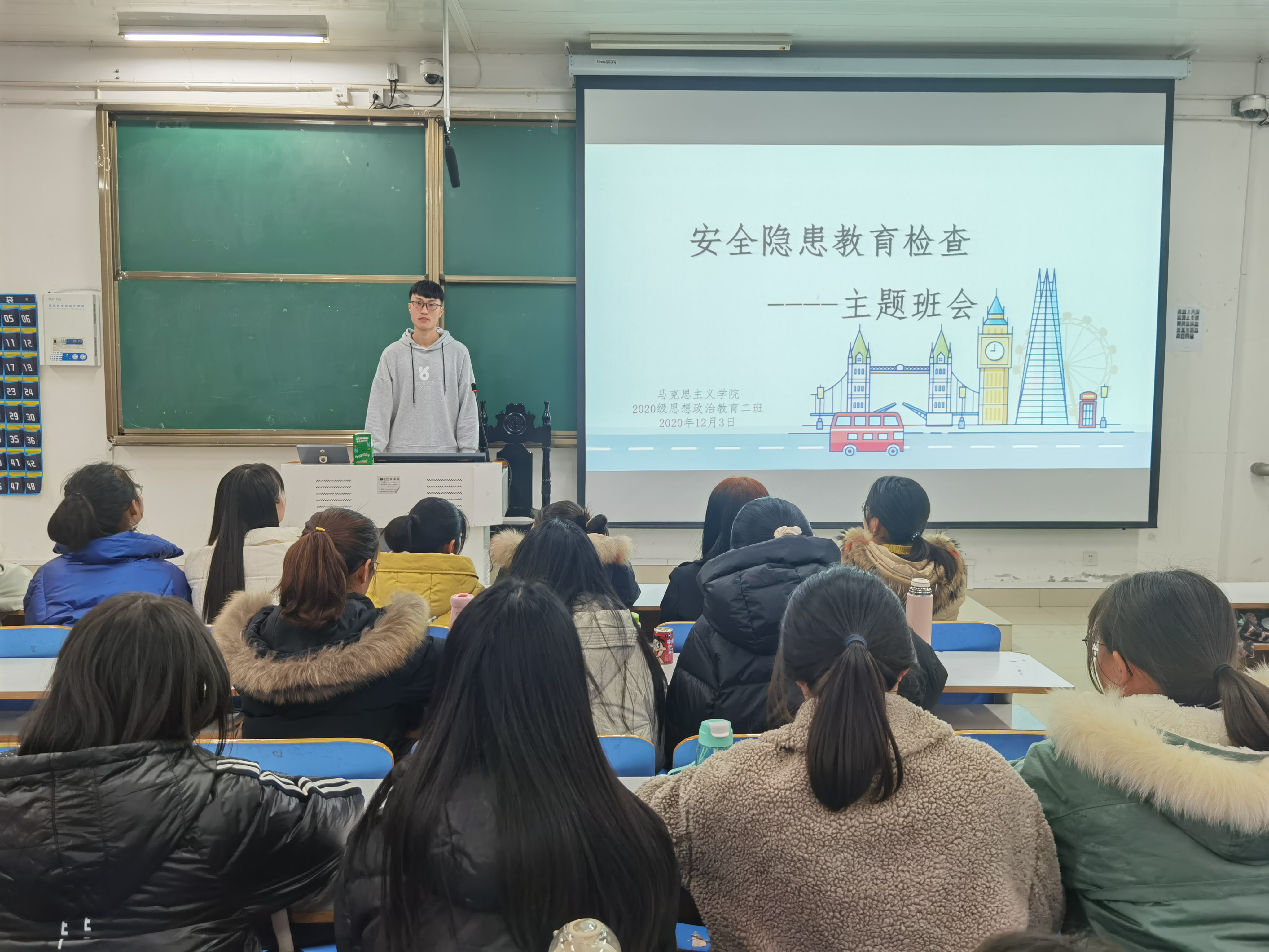 12月3日下午,七大罪 2020级思想政治教育二班在社科楼516教室召开“安全隐患教育检查”主题班会。2020级思想政治教育二班全体学生共同参与本次班会。班会由陈宇航主持。