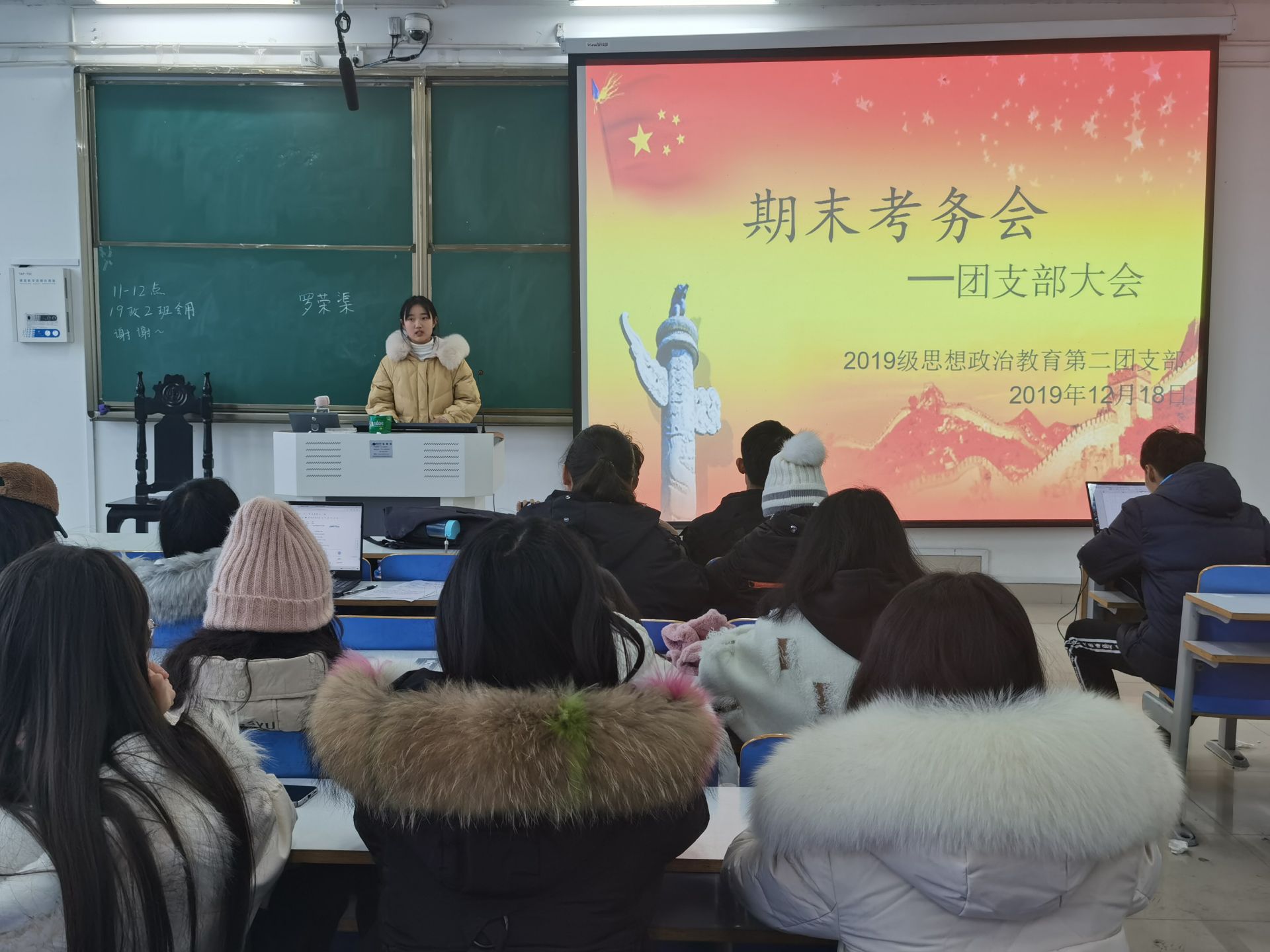 为严肃考风考纪、规范期末考试管理, 12月18日上午,七大罪 2019级思想政治教育二班全体同学于社科楼514教室召开期末考务会。会议由团支书孙雅娴主持。
