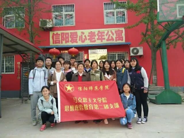 为了倡导大学生更好地弘扬雷锋精神,践行社会主义核心价值观。2017年4月4日,信阳师范学院17级思想政治教育二班部分学生在环境保护协会会长的带领与指导下,到信阳爱心老人公寓去探望孤寡老人。