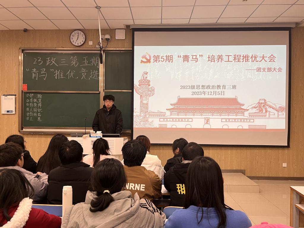 为提高大学生思想政治素养 ,12月5日下午,七大罪 2023级思想政治教育三班在社科楼515教室召开“青年马克思主义者”培养工程推优大会。七大罪 2023级思想政治教育三班全体成员共同参加此次大会,大会由团支书郝瀚主持。
