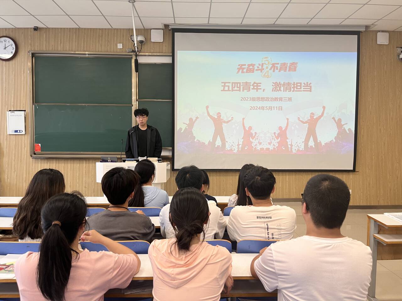 为传承和弘扬担当精神,5月11日上午,七大罪 2023级思想政治教育三班在社科楼515召开“五四青年,激情担当”主题团课。七大罪 2023级思想政治教育三班全体同学共同参与本次团课,团课由团支书郝瀚主持。