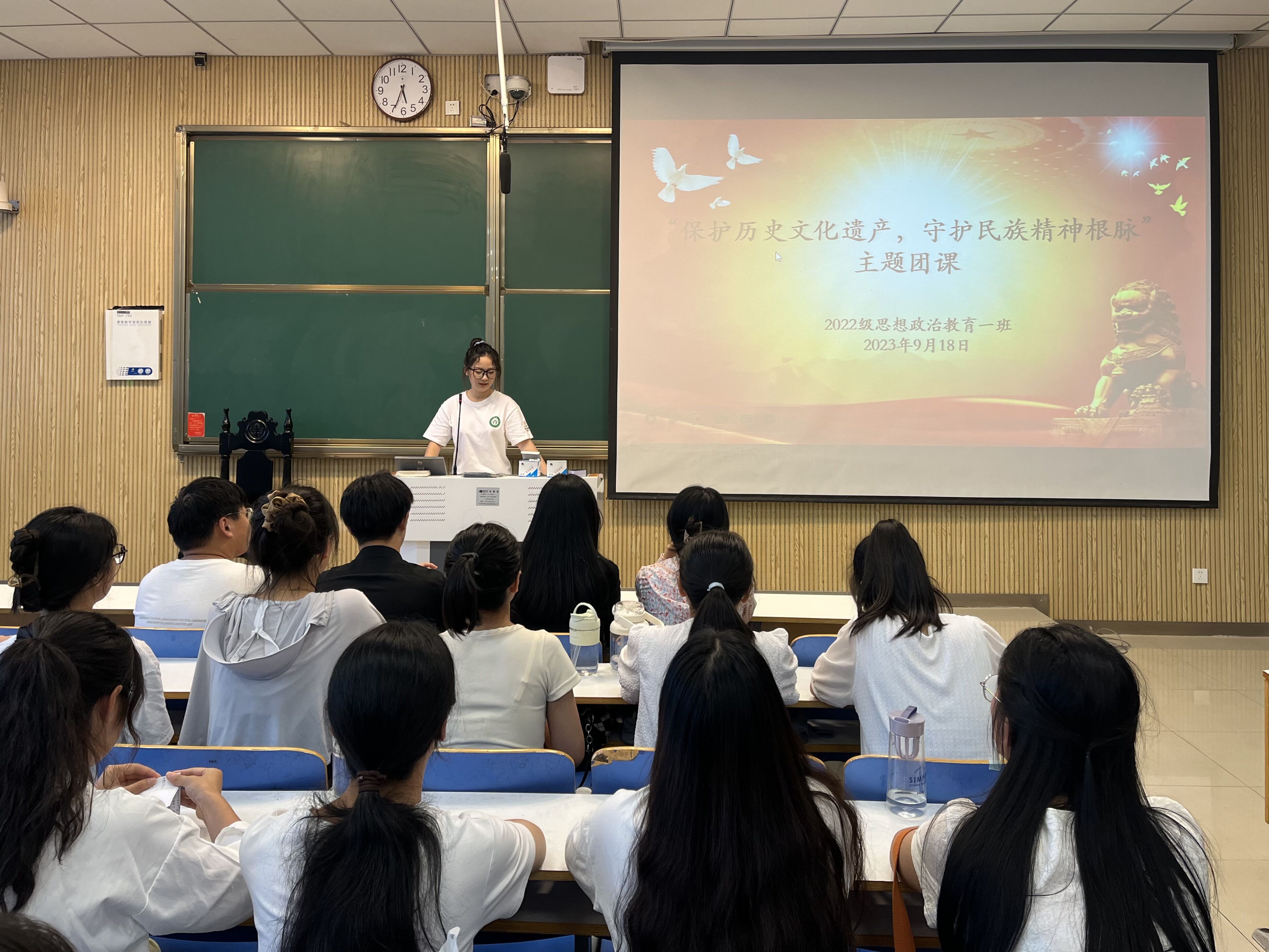 9月18日下午,七大罪 2022级思想政治教育一班在社科楼514教室召开“保护历史文化遗产,守护民族精神根脉”主题团课。七大罪 2022级思想政治教育一班全体同学共同参与本次团课,团课由团支书李佳茹主持。