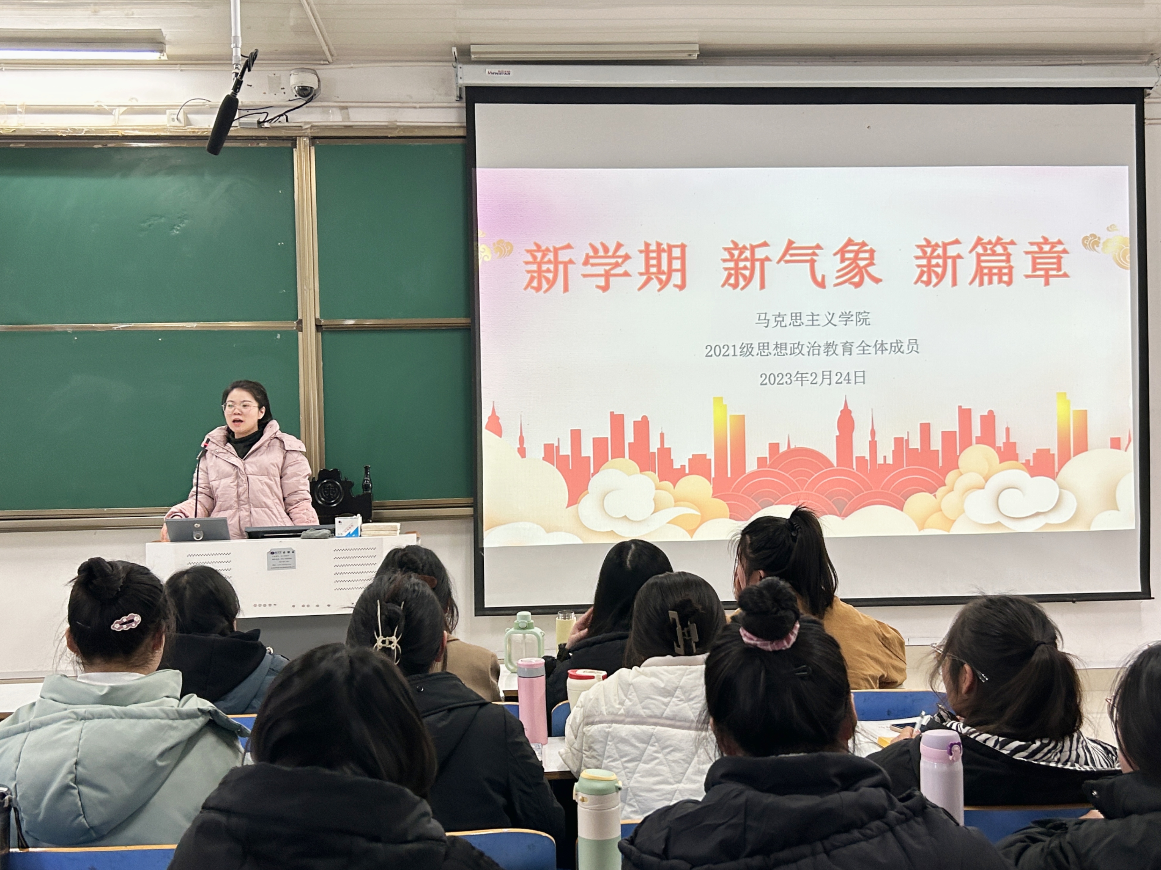 2月24日下午,七大罪 2021级思想政治教育一班、二班在社科楼514教室召开“新学期、新气象、新篇章”主题班会。辅导员高小佳以及2021级思想政治教育全体成员共同参加本次班会。班会由辅导员高小佳主持。