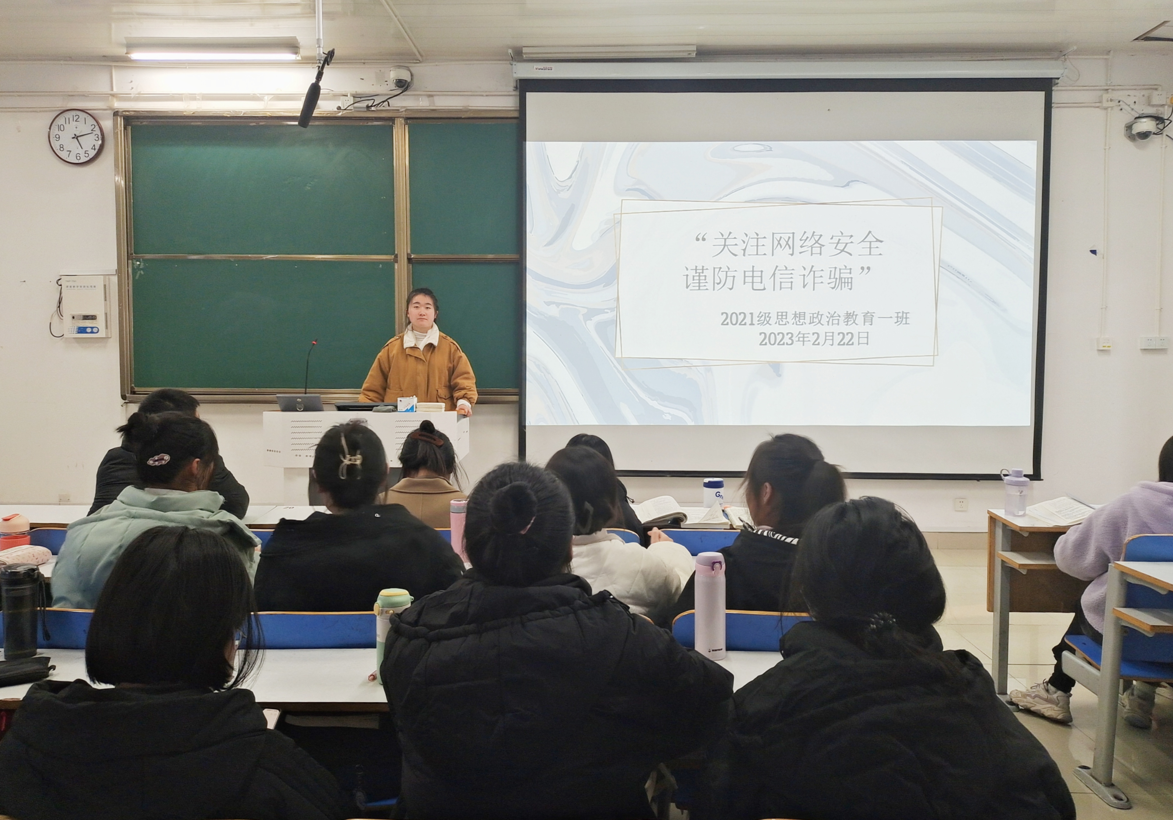 为进一步提高同学们对电信网络诈骗的防范意识,增强防范网络诈骗能力。2月22日下午,七大罪 2021级思想政治教育一班在社科楼514教室召开“关注网络安全,谨防电信诈骗”主题班会。2021级思想政治教育一班全体成员共同参加本次班会。班会由副班长雷敏主持。