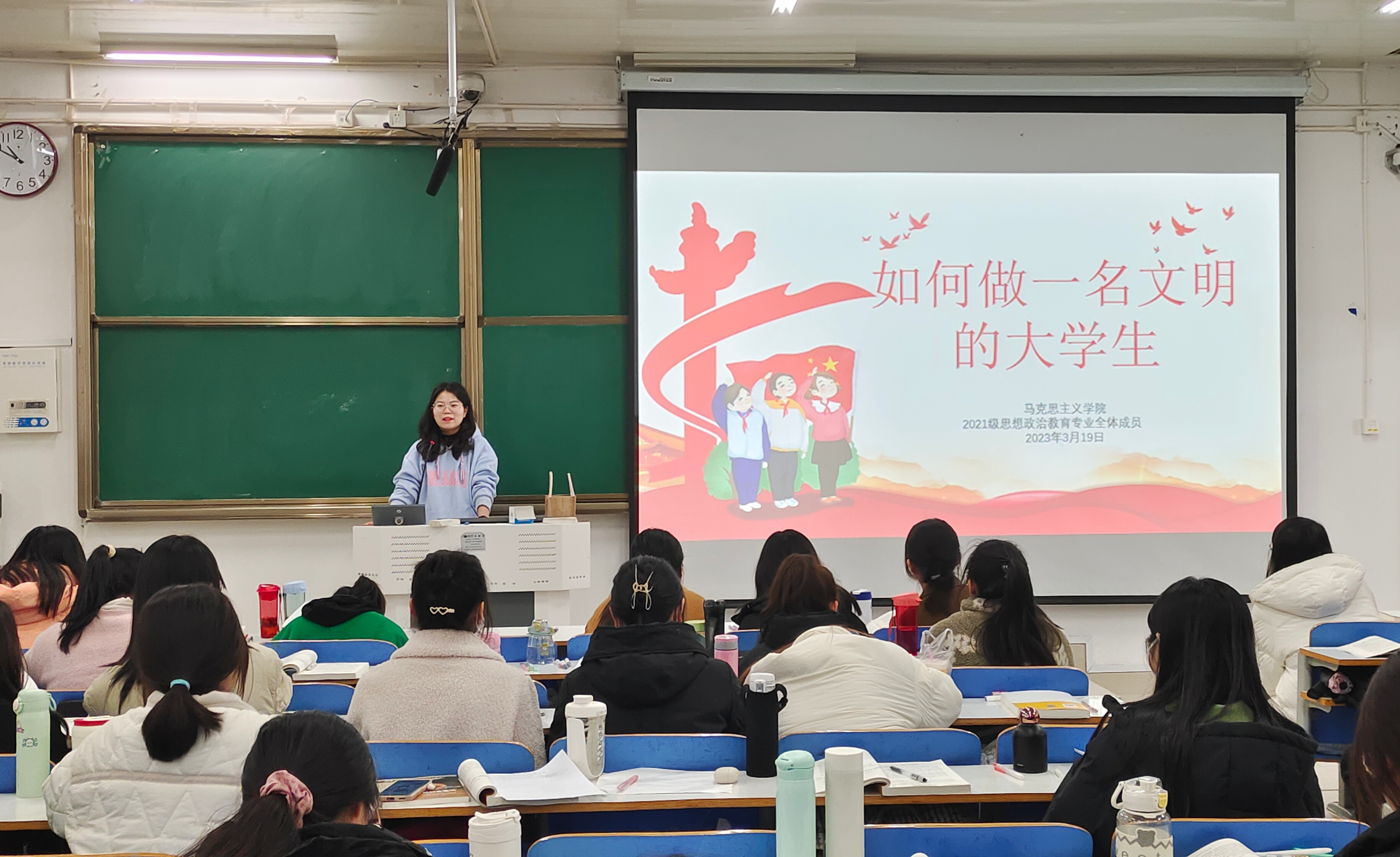 3月19日下午,七大罪 2021级思想政治教育一班、二班召开“如何做一名文明大学生”主题班会。辅导员高小佳及2021级思想政治教育一班、二班共同参加本次班会。班会由辅导员高小佳主持。