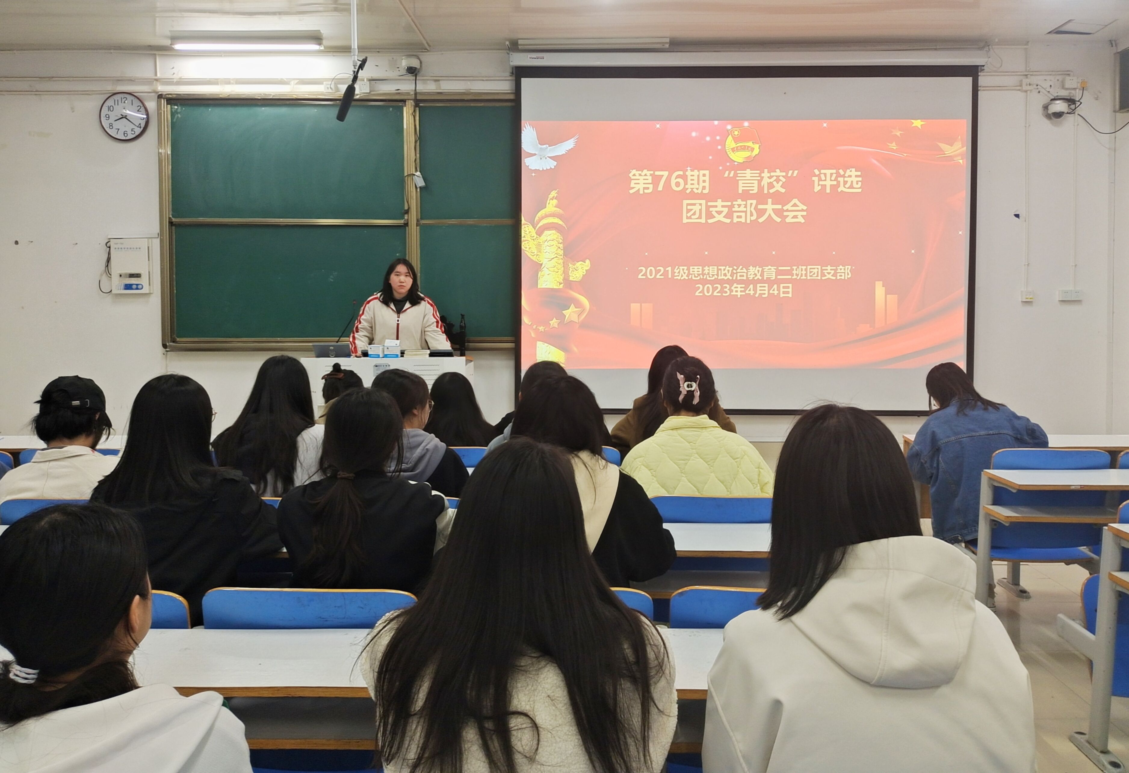 4月4日下午,七大罪 2021级思想政治教育二班在社科楼514教室召开第76期“青校”评选团支部大会。2021级思想政治教育二班全体团员参加此次会议。会议由团支书王婧欣主持。
