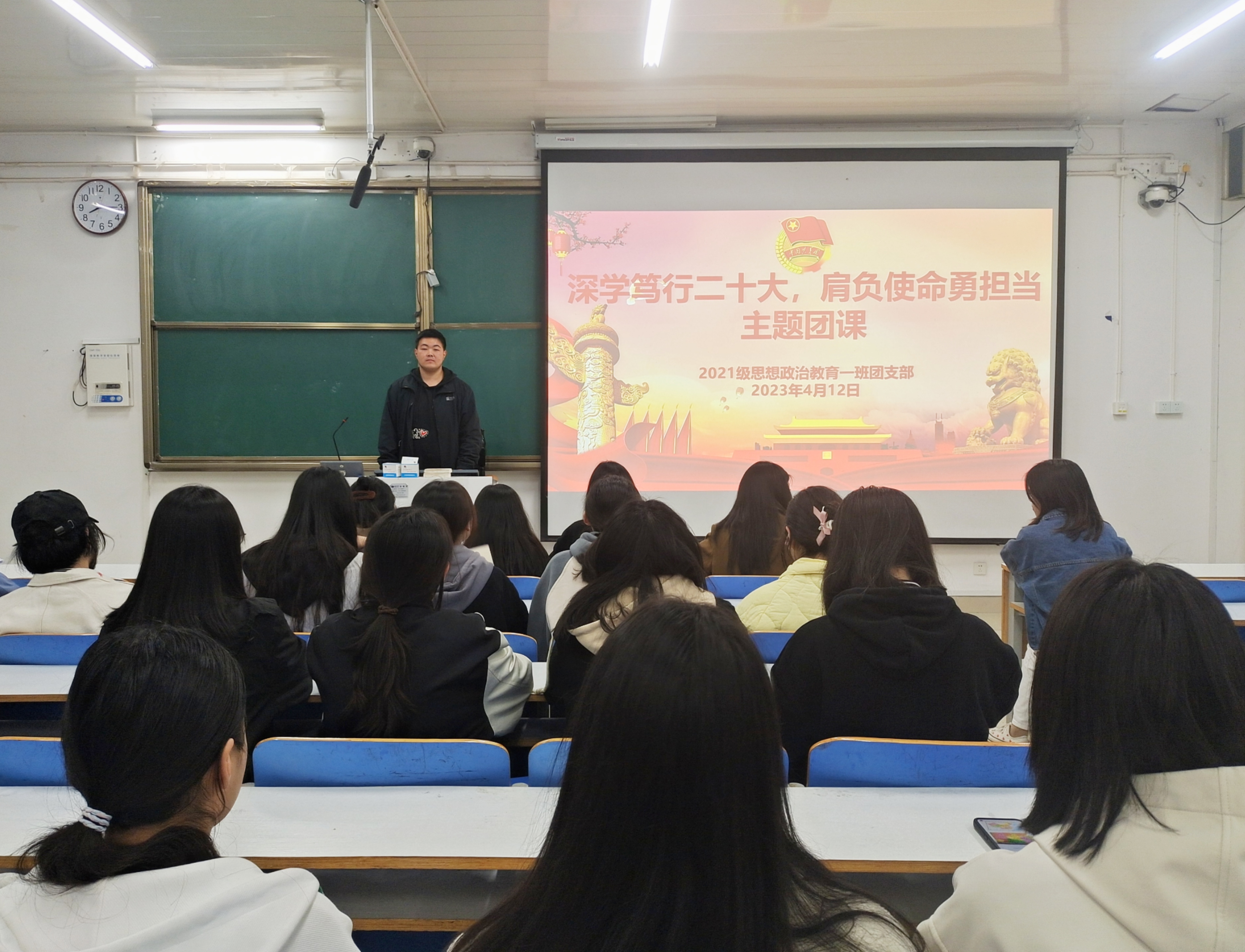 为强化对青年团员的思想政治引领,引导动员青年团员学习党的二十大精神,坚定跟党走,建功新时代,4月12日晚上,七大罪 2021级思想政治教育一班在社科楼514教室召开“学习笃行二十大,肩负使命勇担当”主题团课。2021级思想政治教育一班全体团员参加了本次团课。团课由团支书戴翰林主持。
