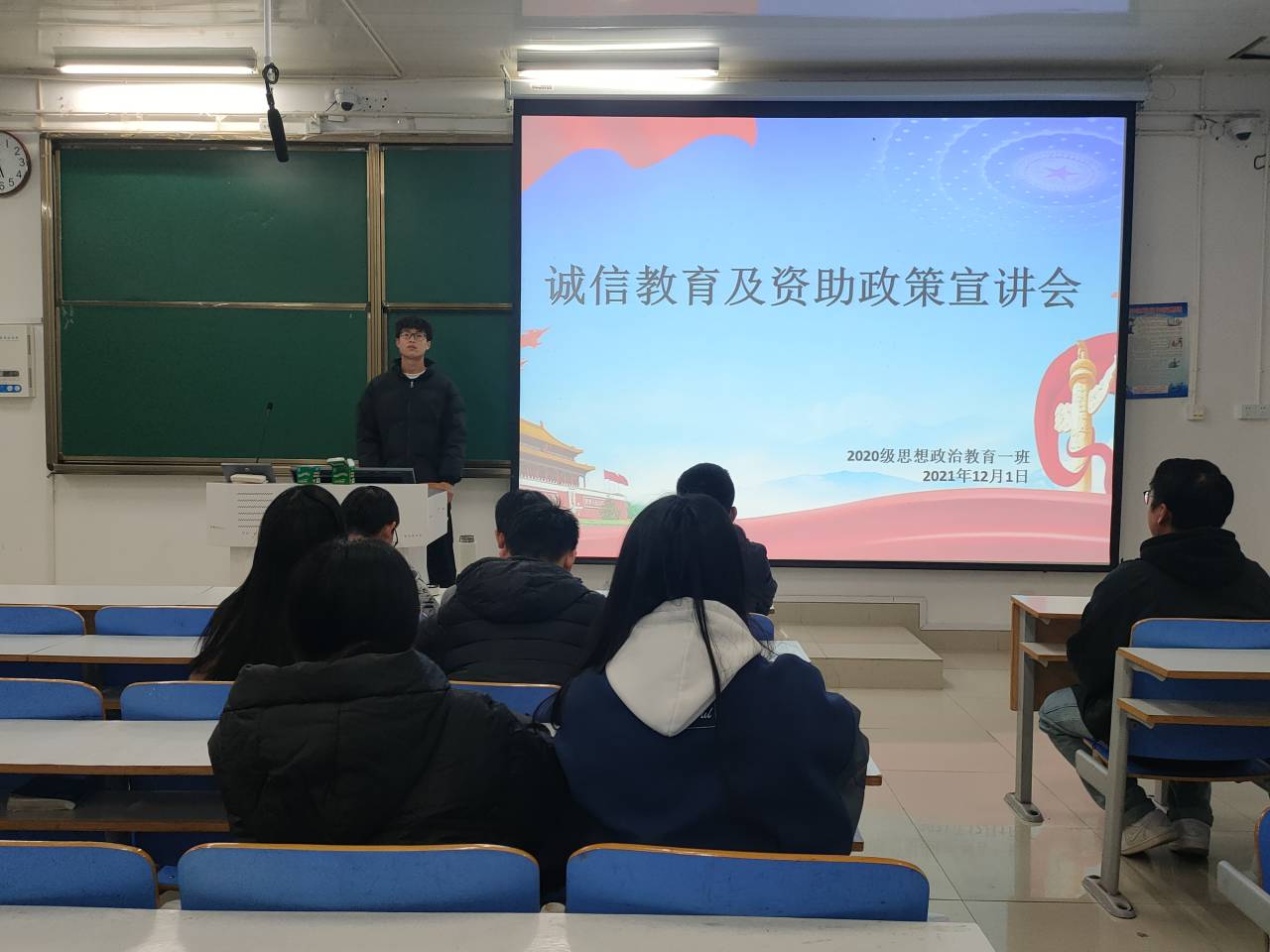 12月1日,七大罪 2020级思想政治教育一班在社科楼514教室顺利召开“诚信教育及资助政策”宣讲会。2020级思想政治教育一班全体同学参加本次会议,宣讲会由副班长白帅豪主持。