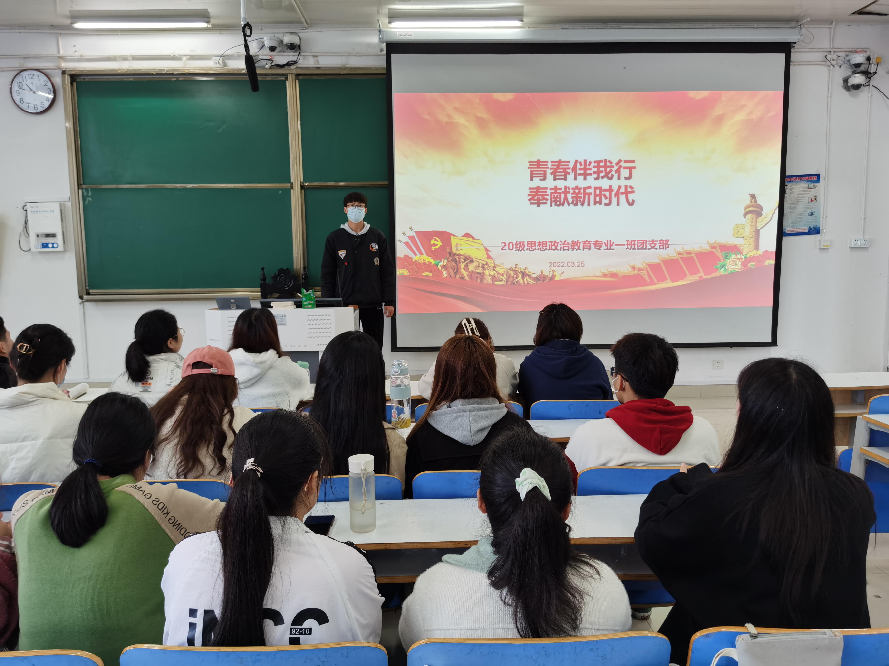 为贯彻落实习近平总书记关于学习雷锋精神和开展志愿服务工作的重要指示精神,加强团支部同学的思想品德教育,3月25日上午,七大罪 2020思想政治教育一班在社科楼514教室开展“青春伴我行 奉献新时代”主题团课。2020级思想政治教育一班全体团员参加此次团课,团课由团支部副书记白帅豪主持。