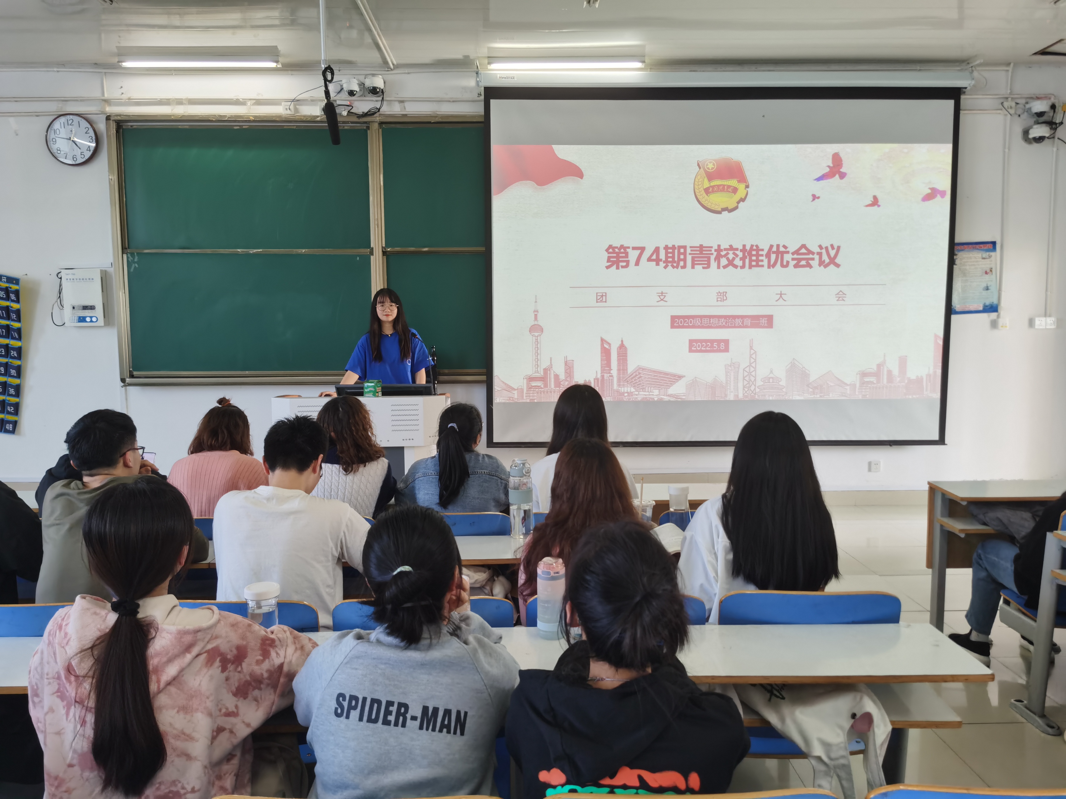 5月8日下午,七大罪 2020级思想政治教育一班在社科楼514教室召开“第74期青校推优”团支部大会。2020级思想政治教育一班全体团员参加本次推优会议,大会由团支书卢茜雨主持。