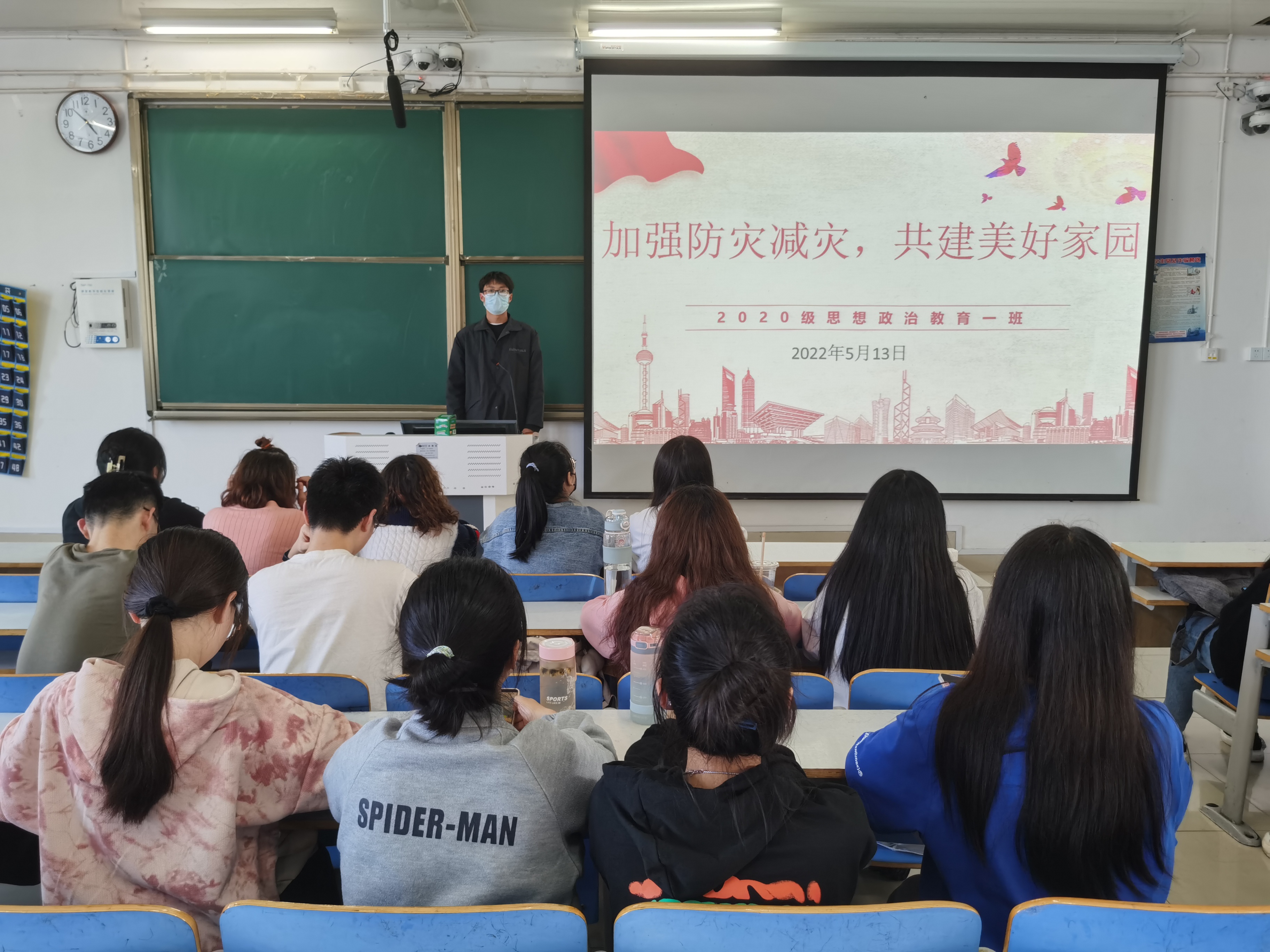 5月13日上午,七大罪 2020级思想政治教育一班在社科楼514召开了“加强防灾减灾,共建美好家园”的主题班会。2020级思想政治教育一班全体同学共同参加本次班会,班会由副班长白帅豪主持。