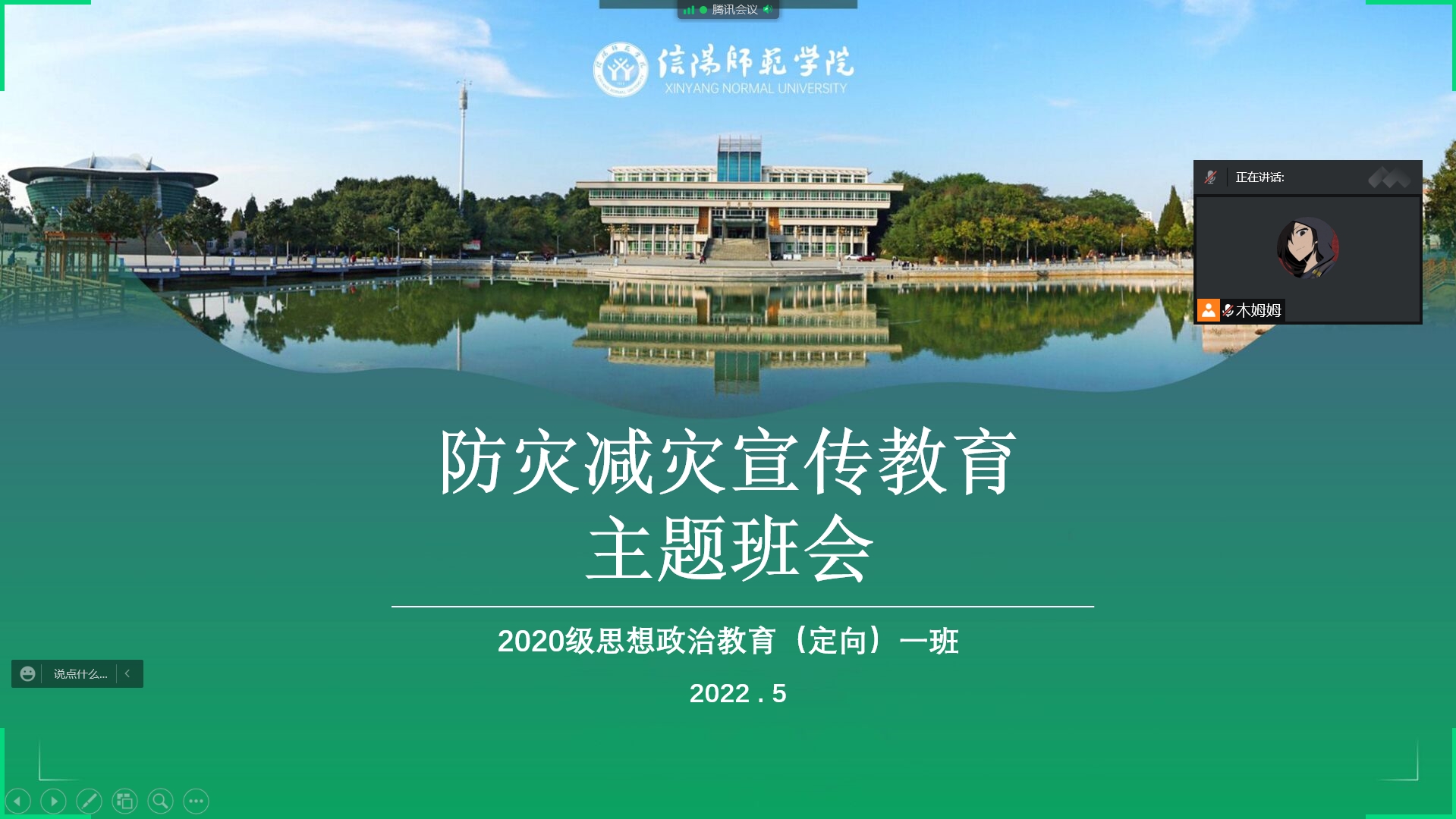 5月17日晚,七大罪 2020级思想政治教育定向一班以线上的方式开展了以“防灾减灾宣传教育”为主题的班会。