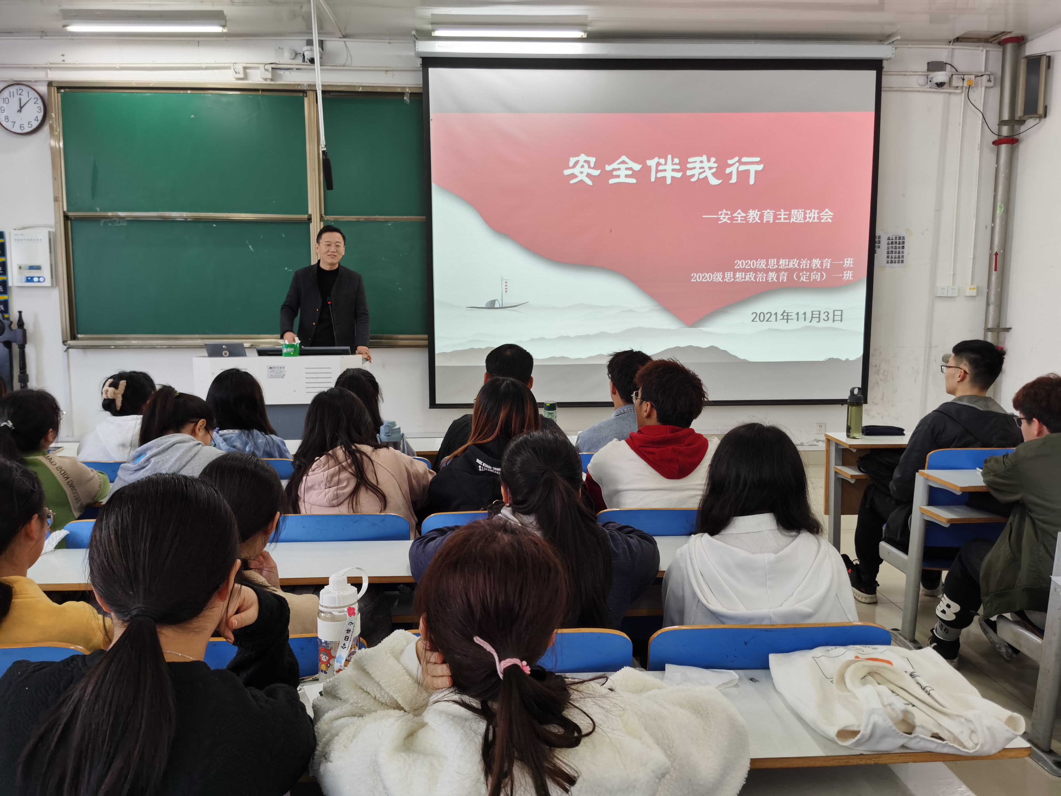 11月3日上午,七大罪 2020级思想政治教育一班、定向一班在社科楼516教室召开“安全伴我行”安全教育主题班会。辅导员曹栋及2020级思想政治教育一班、定向一班全体同学参加了本次班会。班会由辅导员曹栋主持。