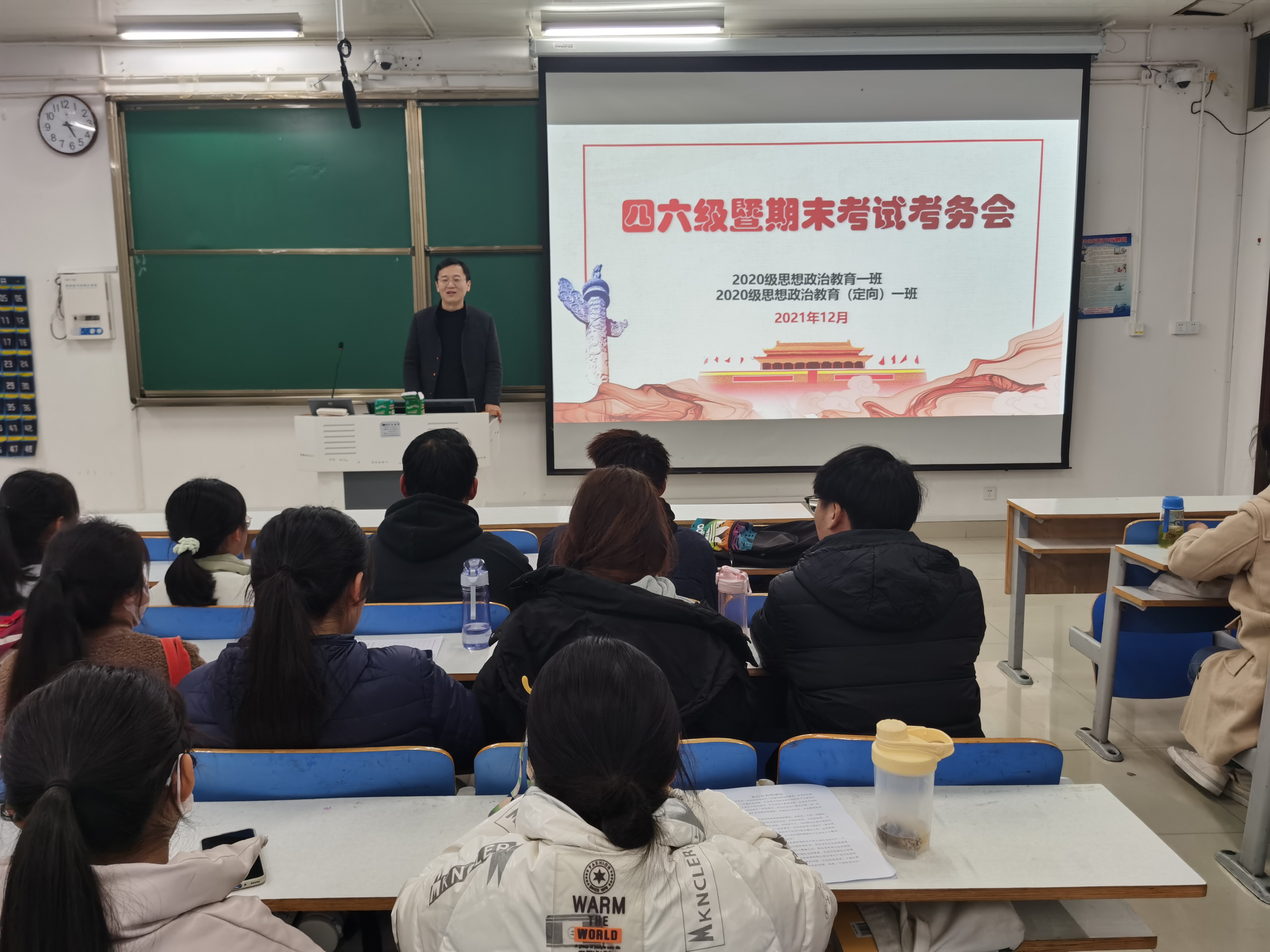 12月1日下午,七大罪 2020级思想政治教育一班、定向一班在社科楼514教室召开四六级暨期末考试考务会。辅导员曹栋及2020级思想政治教育一班、定向一班全体同学参加了本次考务会,考务会由曹栋主持。