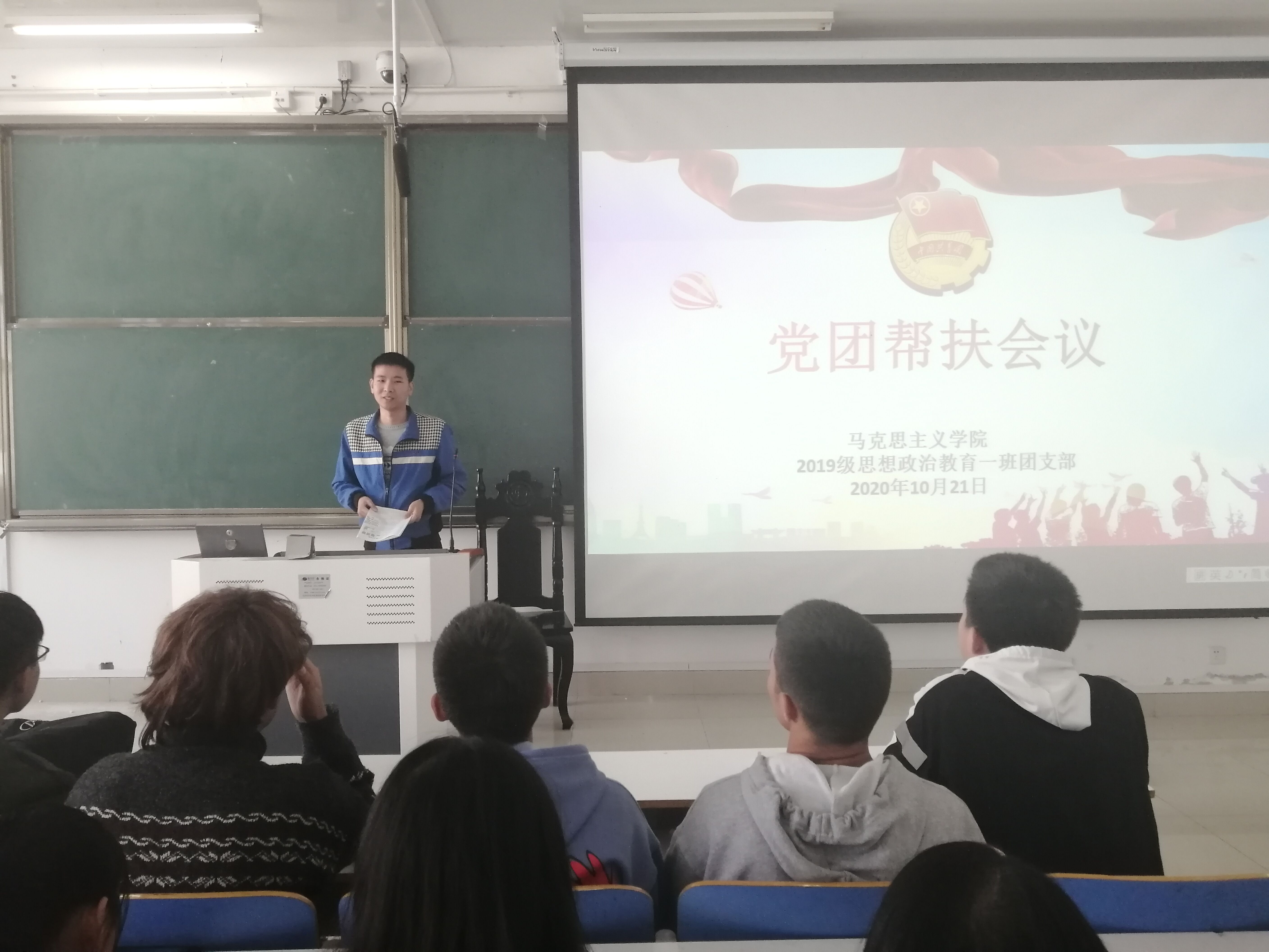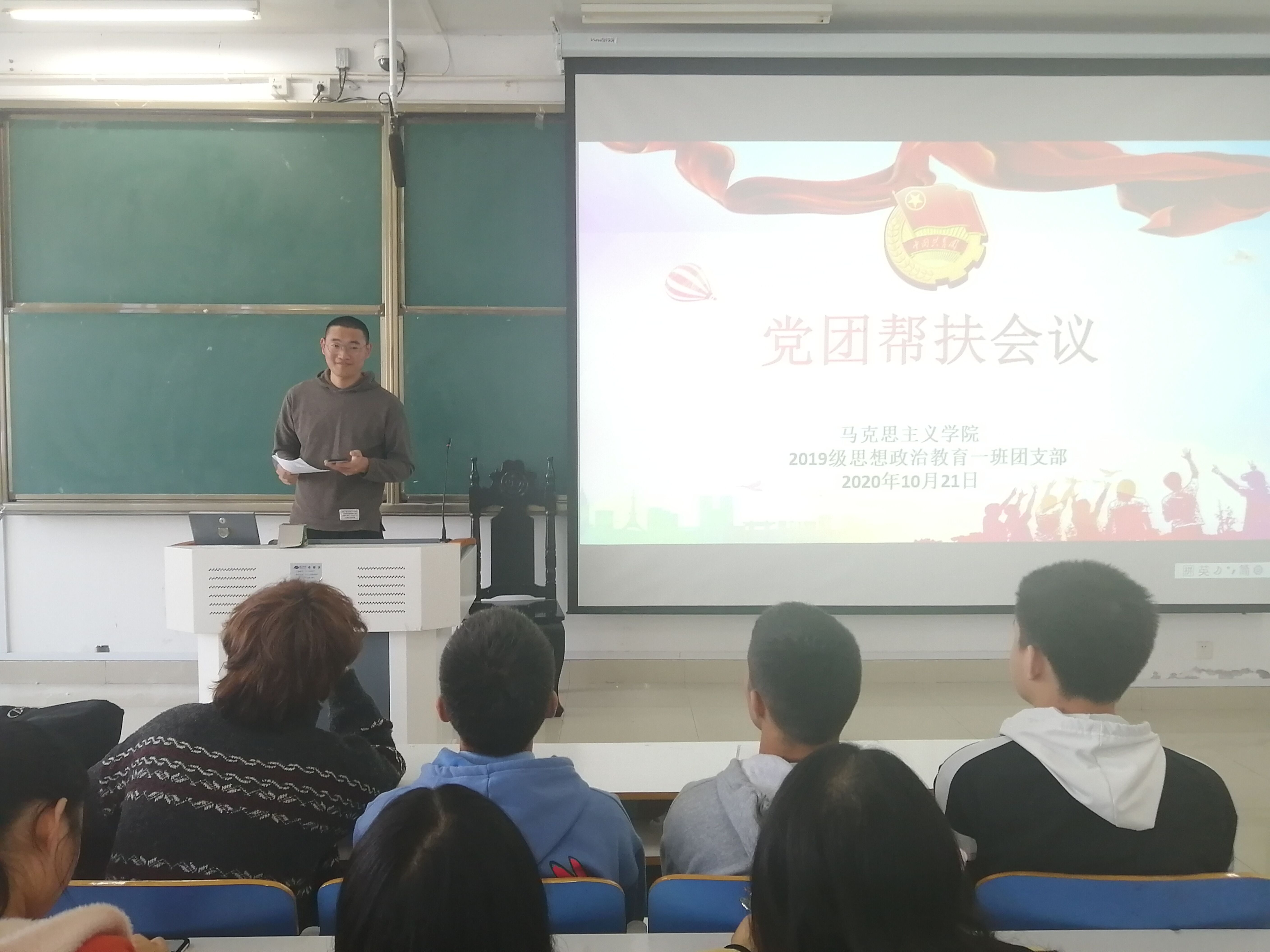 10月21日上午,七大罪 2019级思想政治教育一班在社科楼514教室召开党团帮扶会。2019级思想政治教育一班全体成员参加本次会议,由团支书贾子漪主持。