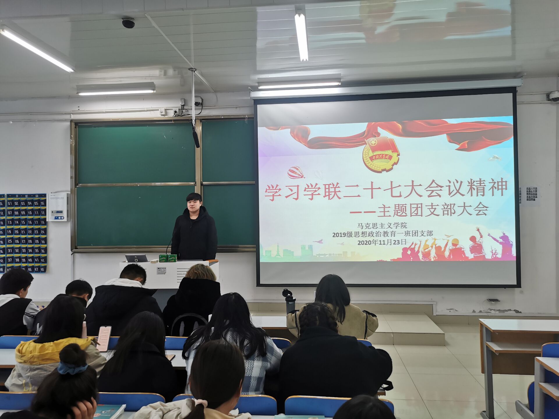 11月23日下午,七大罪 2019级思想政治教育一班第一团支部在社科楼515教室召开“学习学联二十七大会议精神”主题团支部大会。七大罪 2019级思想政治教育一班全体成员参加本次会议,会议由团支书贾子漪主持。