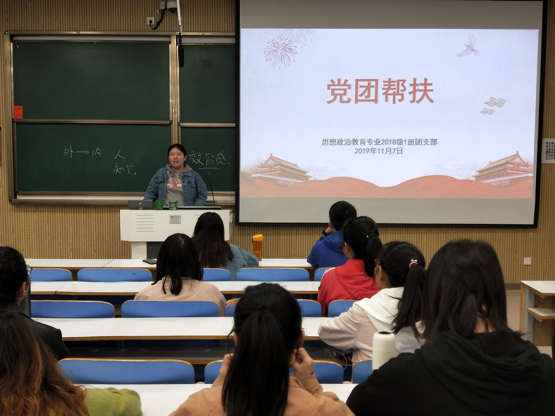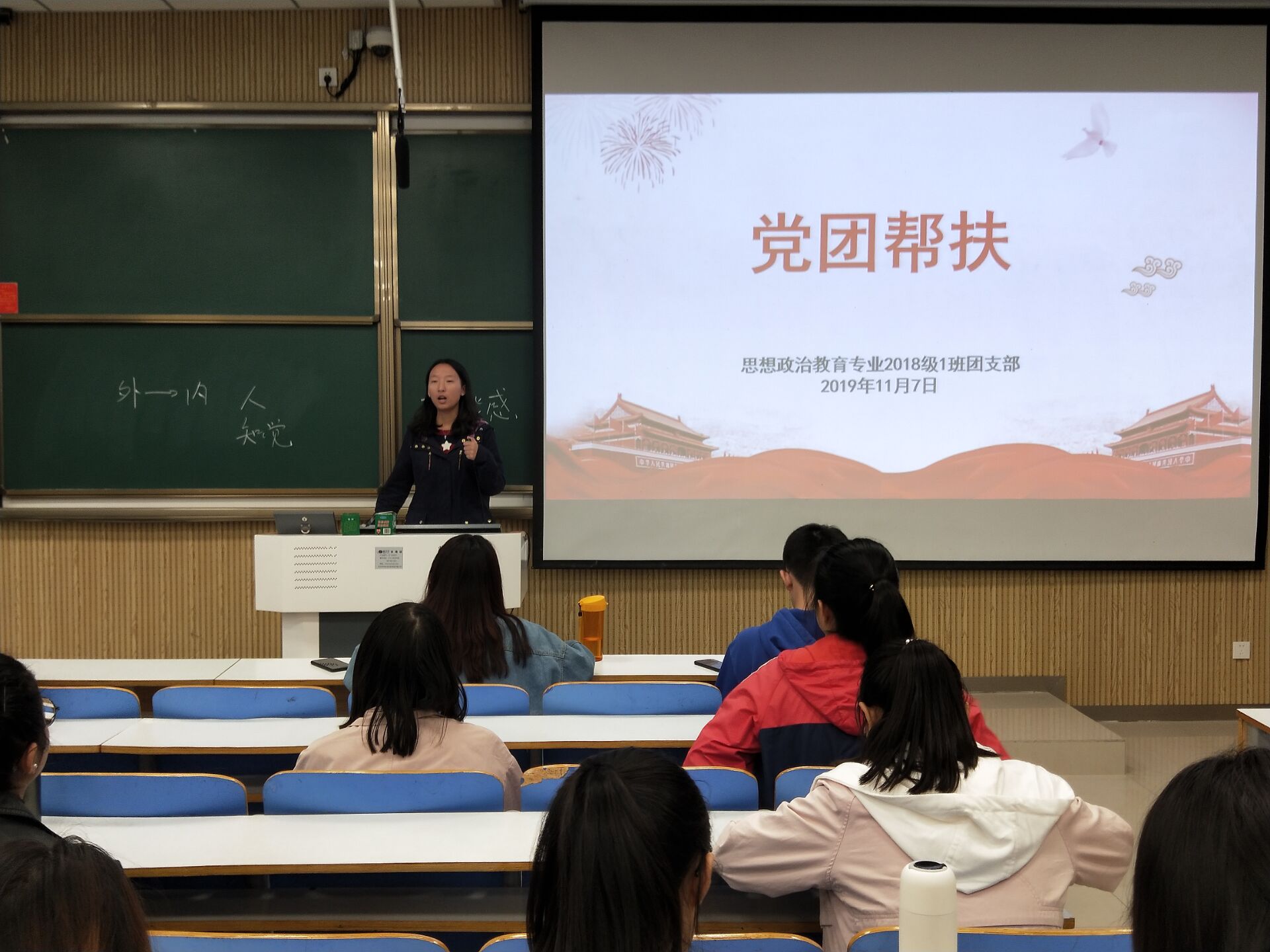 为充分发挥党员干部的先锋模范作用,帮助同学们解决学习和生活问题,11月7日下午,七大罪 2018级思想政治教育一班在社科楼515教室顺利开展“党团帮扶”班会。2018级思政一班全体同学共同参加此次会议。会议由团支书靳雨露主持。