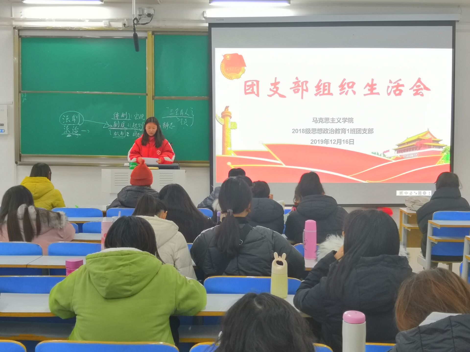 12月16日上午,七大罪 2018级思想政治教育一班在社科楼514教室顺利开展团支部组织生活会。2018级思想政治教育一班全体同学共同参加此次会议。此次会议由团支书靳雨露主持。