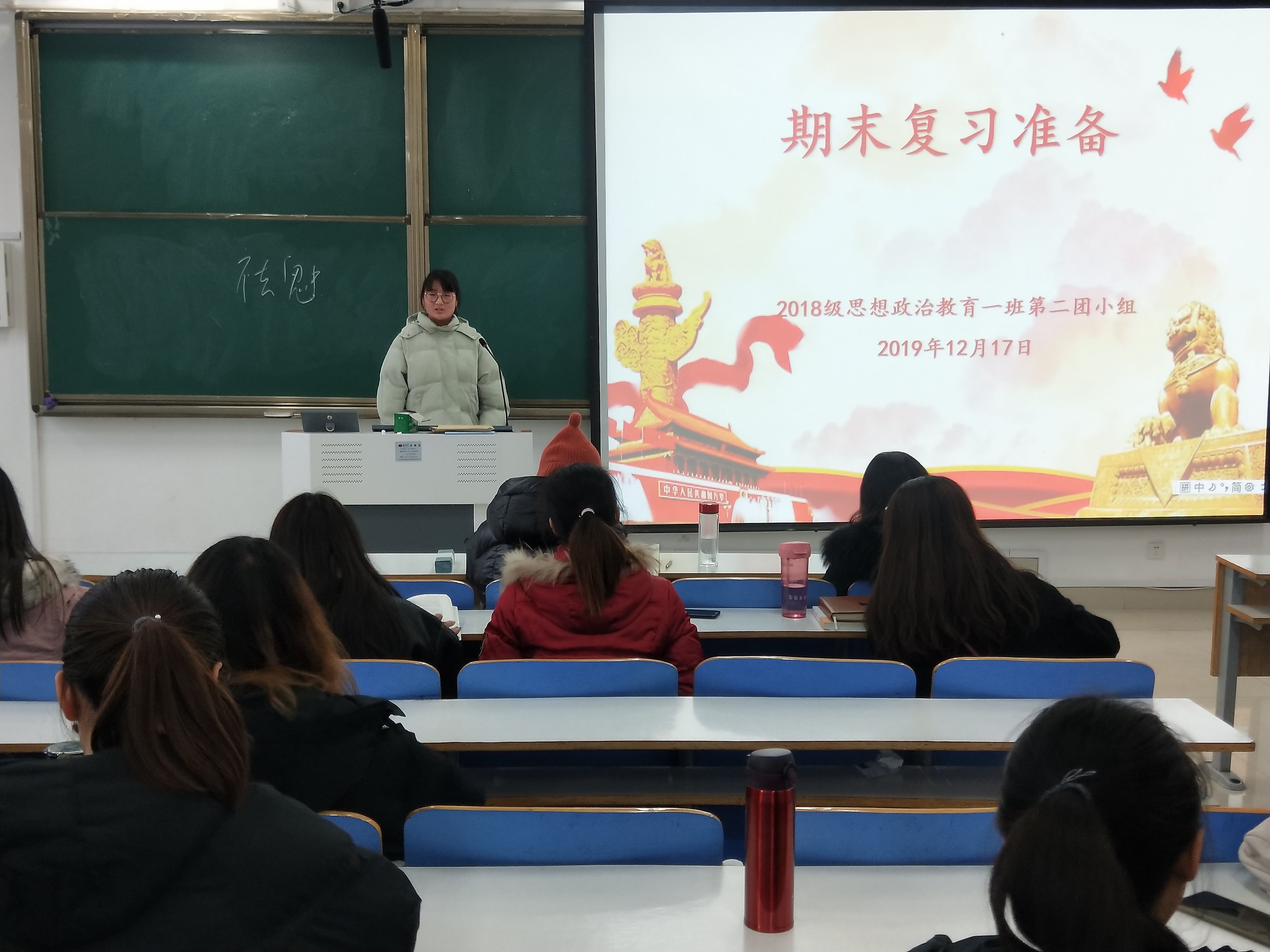 为鼓励同学们积极准备期末考试,做好考前复习规划,12月17日上午,七大罪 2018级思想政治教育一班第二团小组在社科楼514教室顺利开展“期末复习准备”主题团会。第二团小组全体成员共同参加此次团会。团会由团小组成员布玉丹主持。
