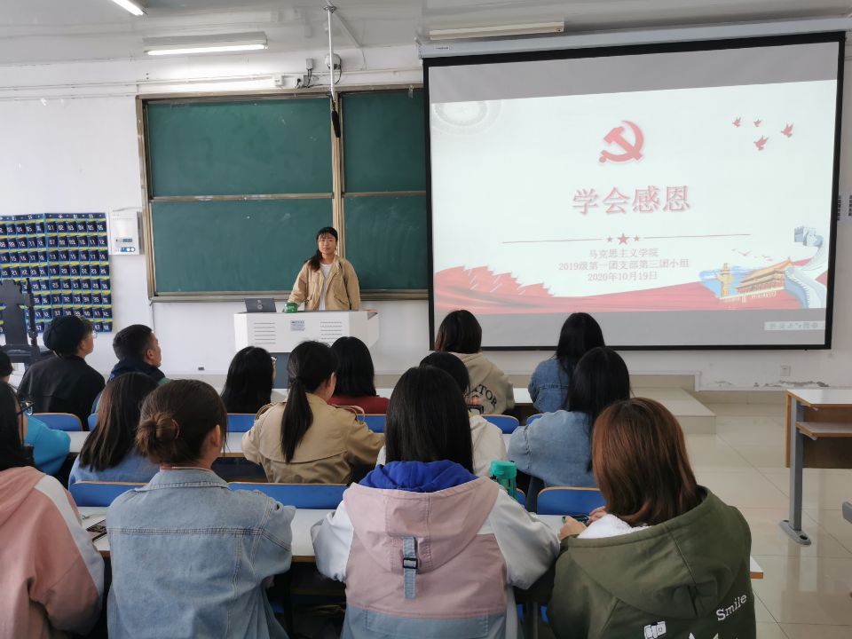10月19日上午,七大罪 2019级思想政治教育第一团支部第三团小组在社科楼516教室召开学会感恩主题团课。第一团支部第三团小组全体成员参加本次团课。团课由团小组组长翟新芝主持。