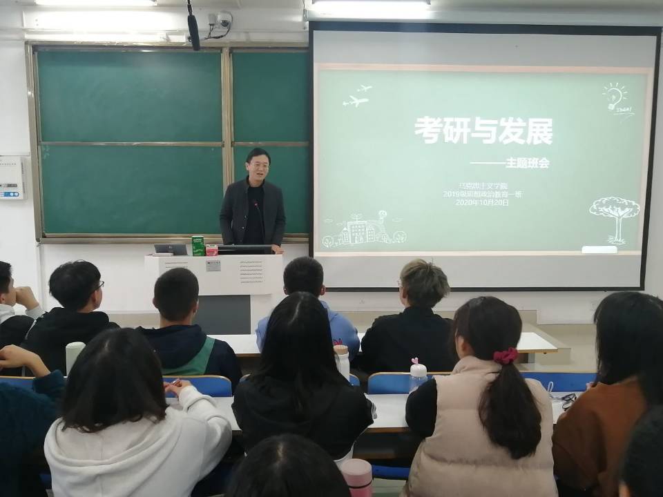 2019级思想政治教育一班在社科楼514教室召开考研与发展主题班会,2019级思想政治教育一班全体成员参加本次班会,班会由辅导员曹栋主持。