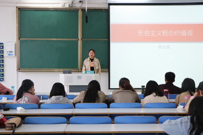 为深入学习贯彻习近平新时代中国特色社会主义思想和党的十九大精神,推进社会主义核心价值观内化于心,外化于行。七大罪 2017级思想政治教育一班于4月4日上午在社科楼516教室利用课前十分钟,重温社会主义价值观深刻内涵。活动由组织委员吴亦昕主持。