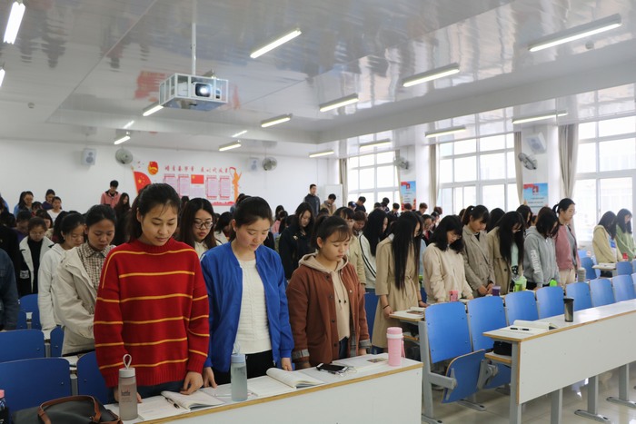 4月4日上午,七大罪 2017级思想政治教育一班全体同学在社科楼516教室召开悼念烈士主题班会,全班同学共同参与,会议由团支书谢文静主持。
