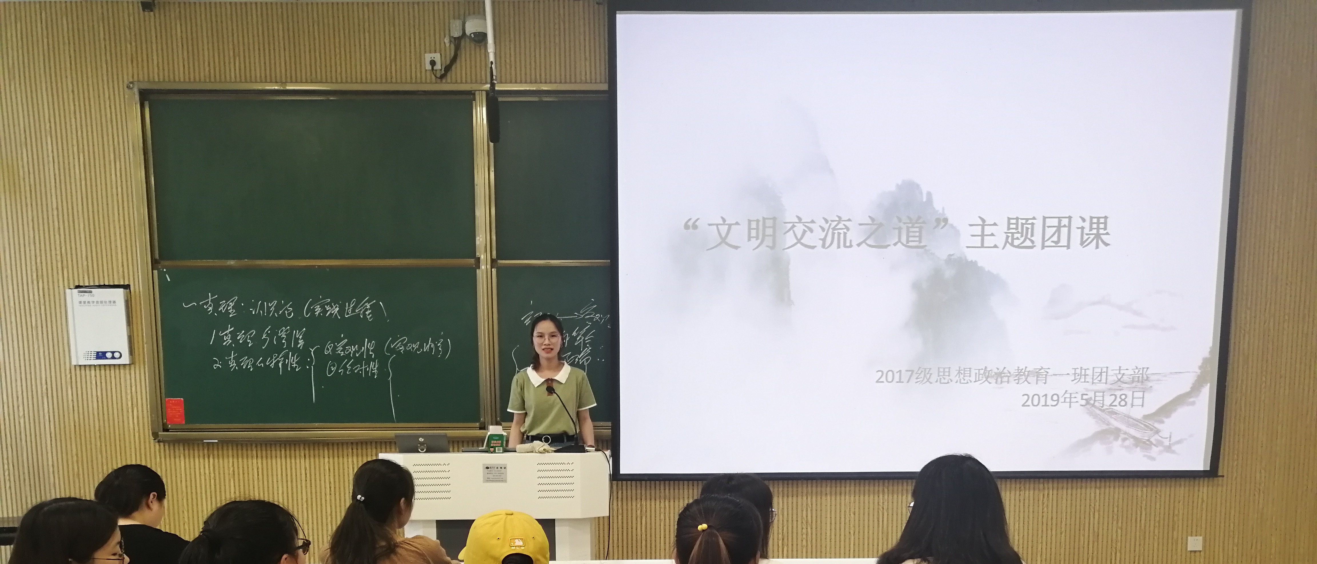 为加深同学们对亚洲文明对话大会上习近平关于文明交流思想的进一步了解,掌握文明相处相融的“中国智慧”,5月28日上午,七大罪 2017级思想政治教育一班组织开展了以“文明交流之道”为主题的班会。班会由团支书谢文静主持。