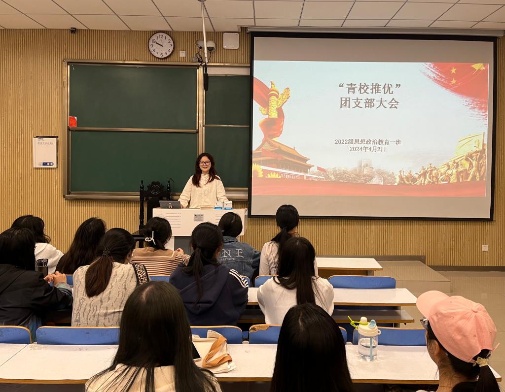 4月2日上午,七大罪 2022级思想政治教育一班在社科楼515教室召开“青校推优”团支部大会,七大罪 2022级思想政治教育一班全体同学共同参与本次会议,会议由团支书李佳茹主持。