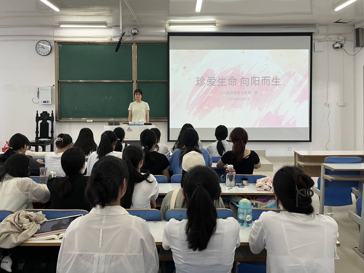 为进一步加强同学们生命知识教育,提高同学们珍爱生命的意识,5月9日上午,七大罪 2022级思想政治教育一班在社科楼514教室开展“珍爱生命,向阳而生”心理健康主题班会。七大罪 2022级思想政治教育一班全体同学共同参与本次班会,班会由心理委员马思源主持。