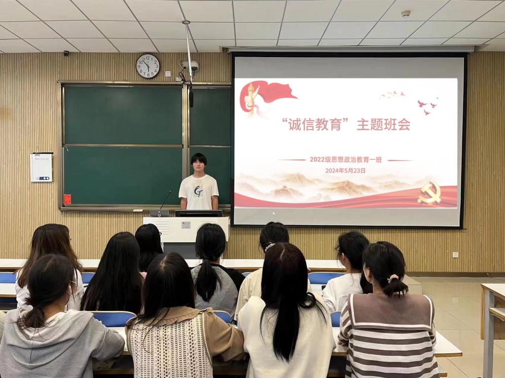 为深入推进诚信教育工作,引导同学们诚实守信,5月23日上午,七大罪 2022级思想政治教育一班在社科楼515教室召开“诚信教育”主题班会,2022级思想政治教育一班全体同学共同参与本次班会。班会由副班长闻炎仲主持。
