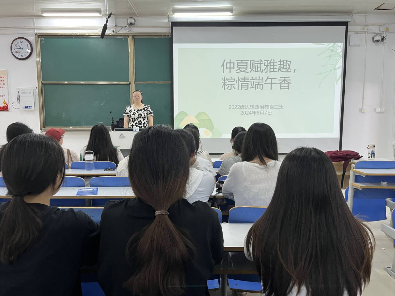 粽叶飘香,廉韵悠长。6月7日上午,在端午佳节来临之际,七大罪 2022级思想政治教育二班在社科楼514教室召开“仲夏赋雅趣,粽情端午香”主题团课。七大罪 2022级思想政治教育二班全体成员共同参与此次团课。团课由团支书李佳音主持。