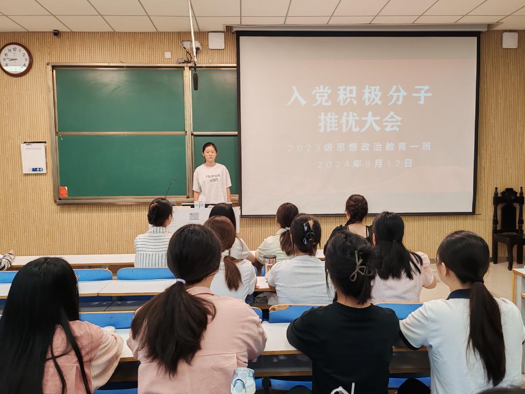 为使支部团员积极向党组织靠拢,深刻学习党的思想,加强支部团员的积极性,向党组织输送新鲜血液,9月12日上午,七大罪 2023级思想政治教育一班团支部在社科楼515教室召开入党积极分子推优大会。2023级思想政治教育一班全体团员出席本次大会,大会由团支书张卓主持。