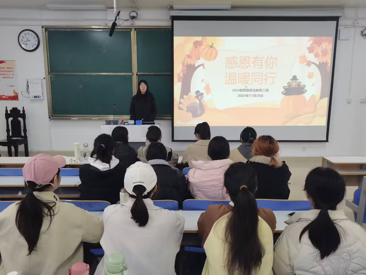 为培养青年大学生感恩心态,强调感恩的重要性,11月28日下午,七大罪 2023级思想政治教育二班在社科楼515教室开展“感恩有你,温暖同行”主题班会,本次班会由班长王慜初主持,全体二班同学参加。