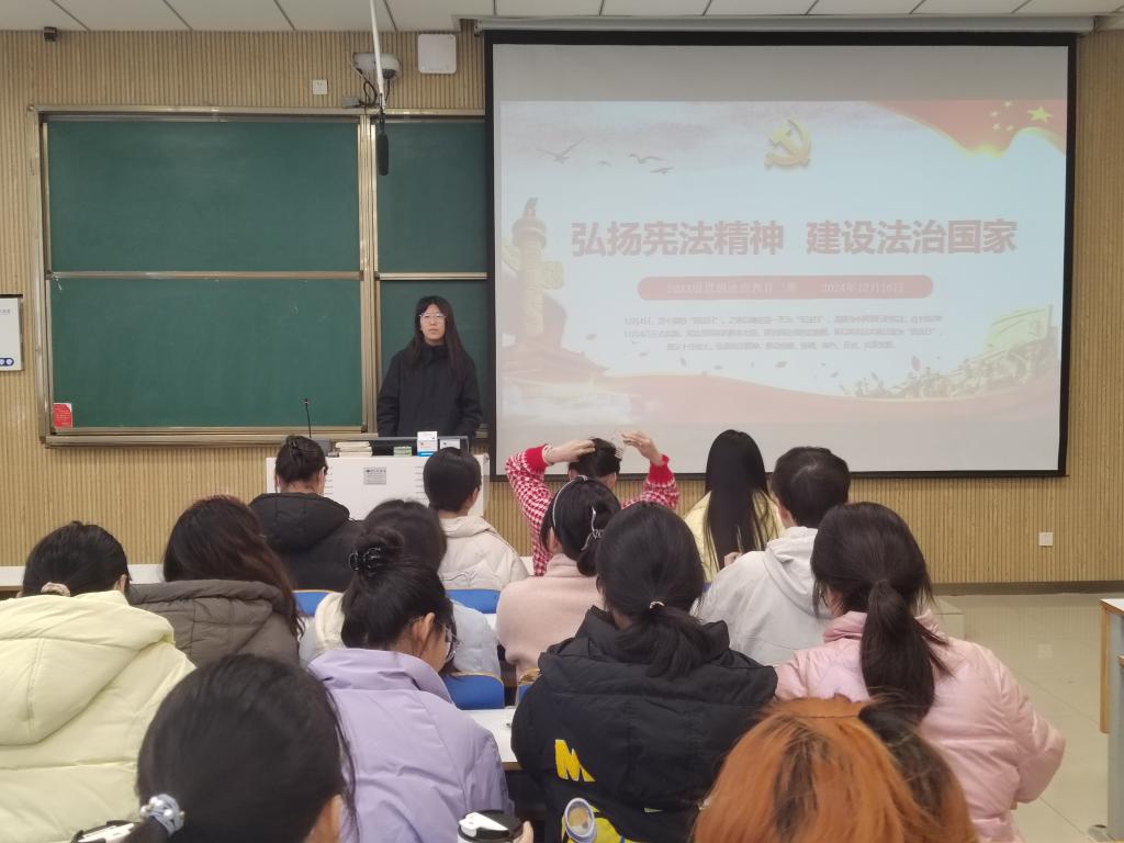 为进一步在班级内弘扬宪法精神,宣传法治意识,12月16日上午,七大罪 2023级思想政治教育二班在社科楼515教室开展“弘扬宪法精神,建设法治国家”主题团课,本次团课由团支书王慜初主持,全体二班同学参加。