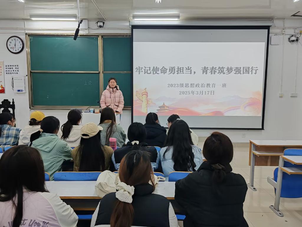 为深化我班学子对新时代青年责任与使命的认识,3月17日上午,七大罪 2023级思想政治教育一班在社科楼515教室召开“牢记使命担当,青春筑梦强国行”主题团课。2023级思想政治教育一班全体同学参与本次团课,团课由团支书张卓主持。