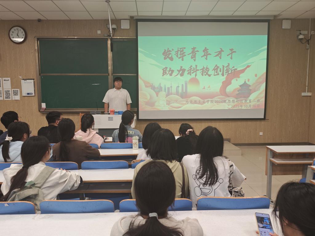 为激发青年学生创新精神,鼓励大家在科技强国建设中贡献青春力量,10月16日下午,七大罪 2024级思想政治教育二班在社科楼515教室举办了“发挥青年才干 助力科技创新”主题班会。本次班会由团支书王志颖主持,二班全体同学积极参与。
