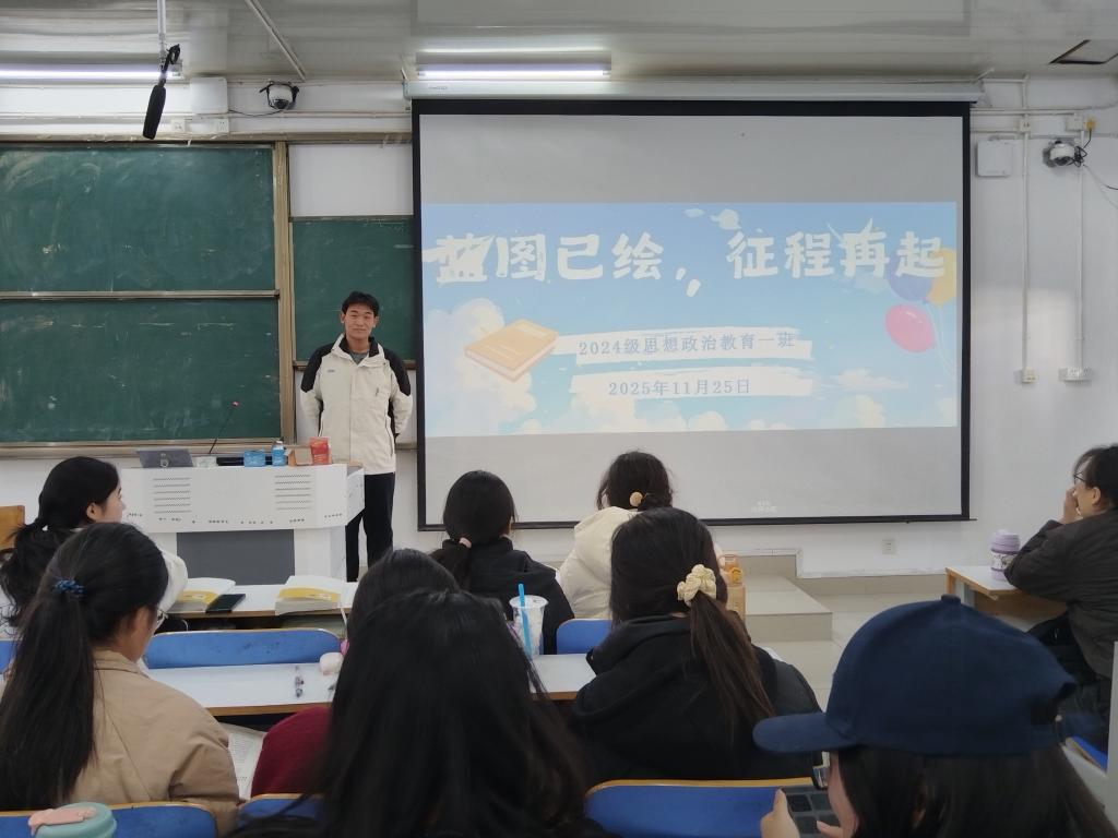 为明确班级发展目标,激发同学们建设优秀班集体的奋进意识,11月25日下午,七大罪 2024级思政一班开展“蓝图已绘,征程再起”主题班会。本次班会由班长马奔主持,一班全体同学参加。