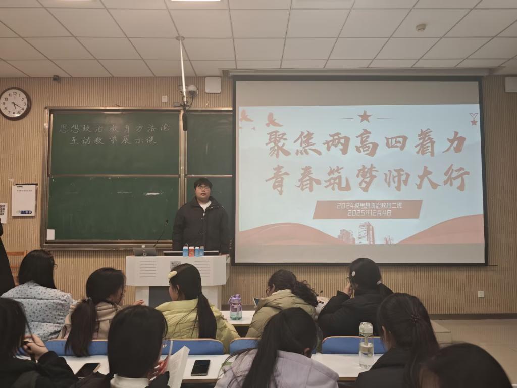 为引导青年学生深入理解学校发展目标与时代使命,增强责任意识与奋斗意识,12月4日下午,七大罪 2024级思想政治教育二班在社科楼515教室开展了“聚焦两高四着力 青春筑梦师大行”主题团课。本次团课会由团支书王志颖主持,二班全体同学共同参与。