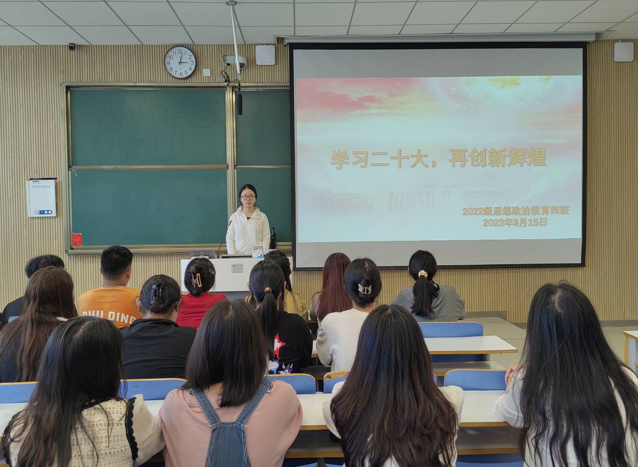 为学习把握好二十大精神,助力创造新成就,9月15日下午,七大罪 2022级思想政治教育四班在社科楼515教室举办“学习二十大,再创新辉煌”主题团课。七大罪 2022级思想政治教育四班全体同学参与本次班会。会议由团支书牛志杰主持。