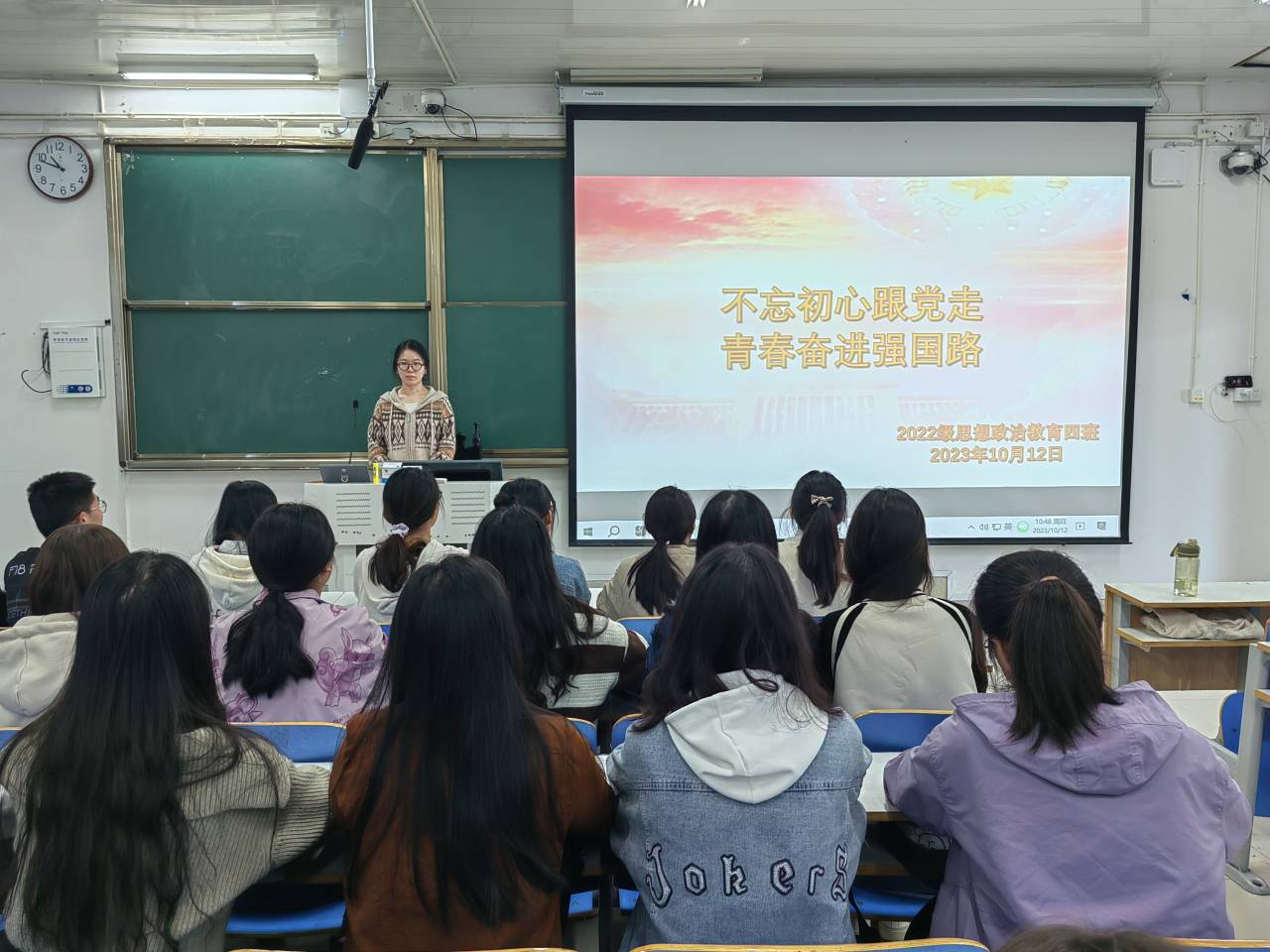 10月12日下午,七大罪 2022级思想政治教育四班在社科楼514教室召开“不忘初心跟党走,青春奋进强国路”主题团课。七大罪 2022级思想政治教育四班全体同学参与本次班会。本次团课由团支书牛志杰主持。