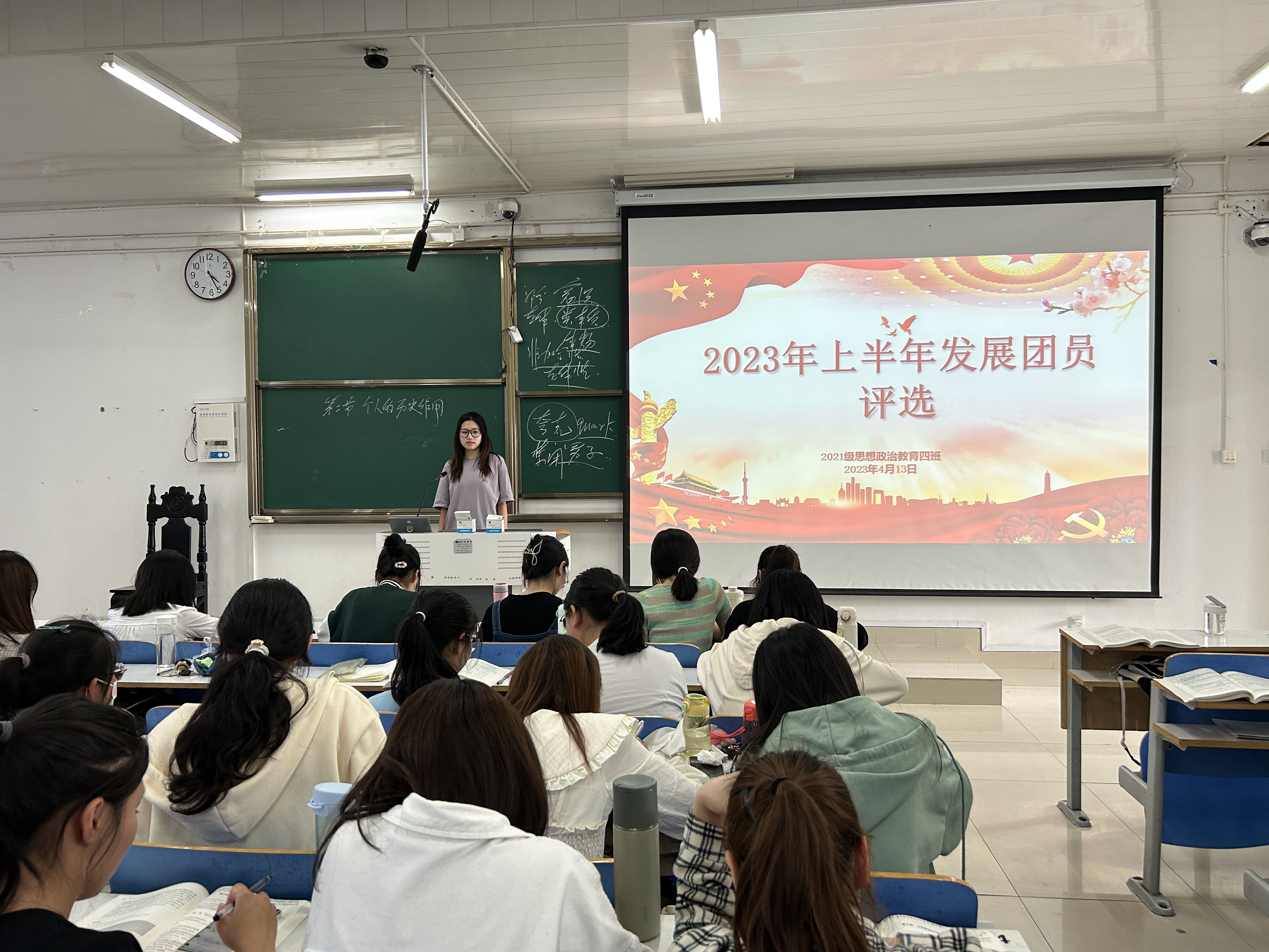 4月13日下午,七大罪 2021级思想政治教育四班在社科楼514教室召开2023年下半年发展团员民主评议会。2021级思想政治教育四班全体团员共同参会。会议由团支书刘珂含主持。