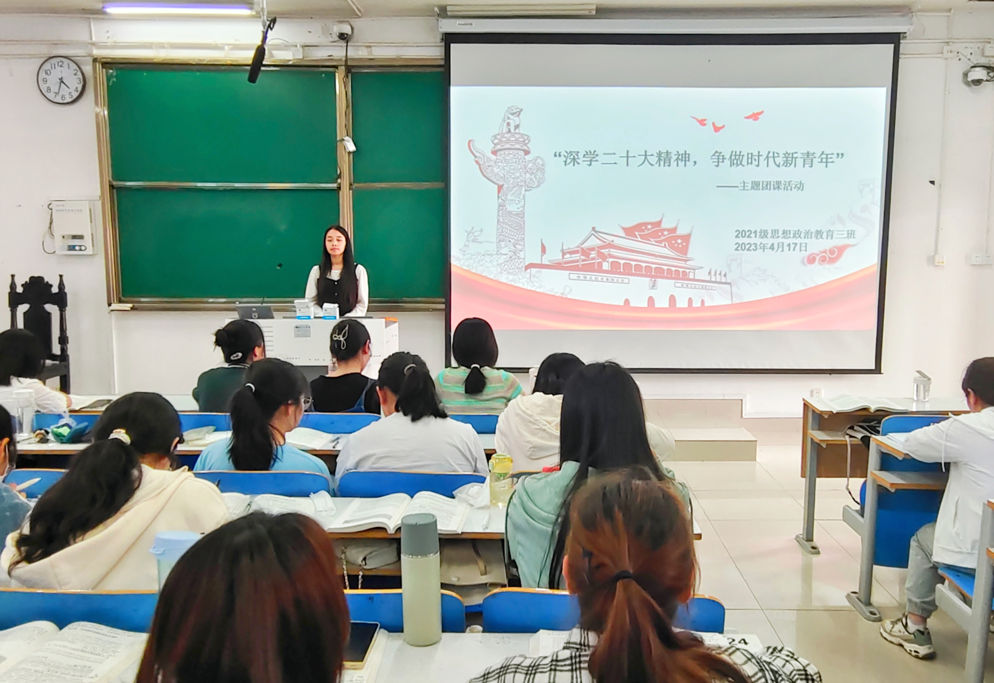 4月17日下午,七大罪 2021级思想政治教育三班在社科楼514教室举办“深学二十大精神,争做时代新青年”主题团课活动。七大罪 2021级思想政治教育三班全体团员参与此次会议。团课由团支书王岚霄主持。