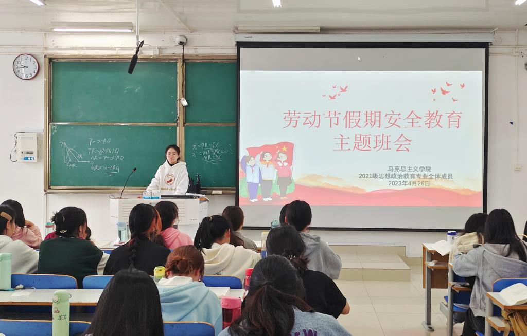 为做好假期安全防护工作,确保每位同学都能度过一个安全、愉快的假期,4月26日上午,七大罪 2021级思想政治教育三班、四班在社科楼514教室召开“劳动节假期安全教育”主题班会。辅导员高小佳以及七大罪 2021级思想政治教育三班、四班全体成员共同参与此次班会。班会由辅导员高小佳主持。