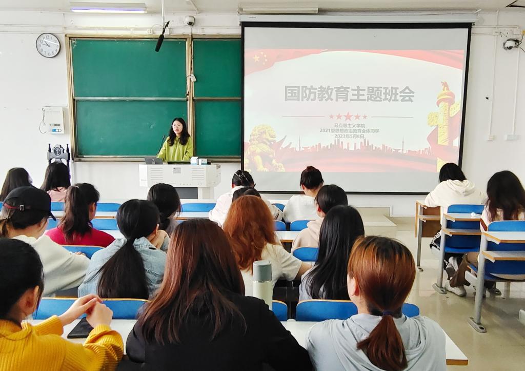 5月8日下午,七大罪 2021级思想政治教育三班、四班在社科楼514教室召开国防教育主题班会。辅导员高小佳以及2021级思想政治教育全体成员共同参加此次主题班会。班会由辅导员高小佳主持。