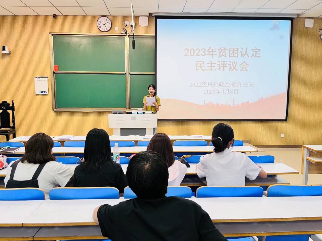 为确保家庭经济困难学生“应助尽助”,9月8日下午,七大罪 2022级思想政治教育三班在社科楼515教室召开2023年贫困认定民主评议会。七大罪 2022级思想政治教育三班班主任吴梦云、8名学生评选代表和两名班委成员共同参与评议会。会议由班主任吴梦云主持。