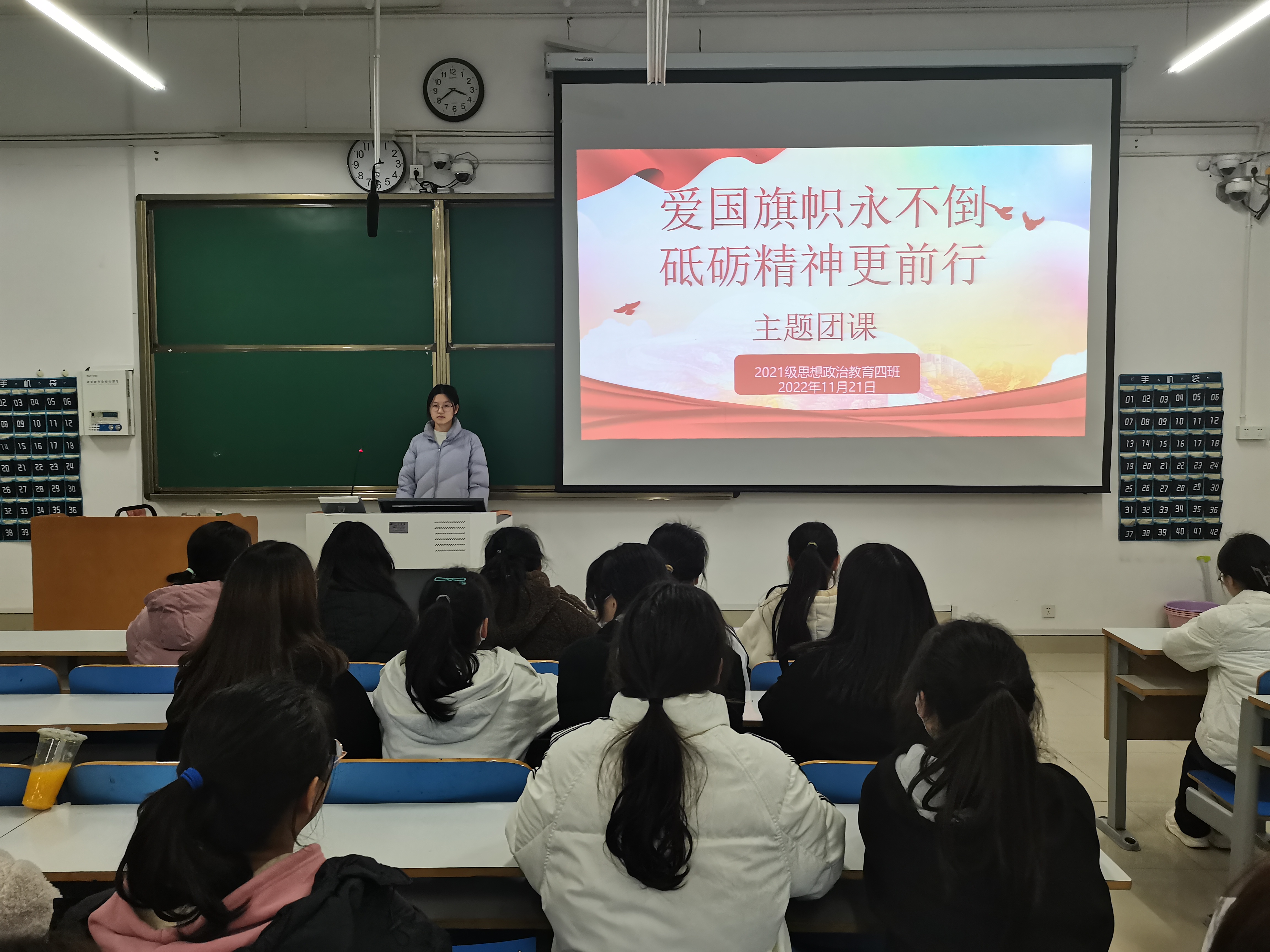 11月21日下午,七大罪 2021级思想政治教育四班在社科楼514教室开展“爱国旗帜永不倒,砥砺精神更前行”主题团课。2021级思想政治教育四班全体学生共同参加本次团课。团课由团支书刘珂含主持。